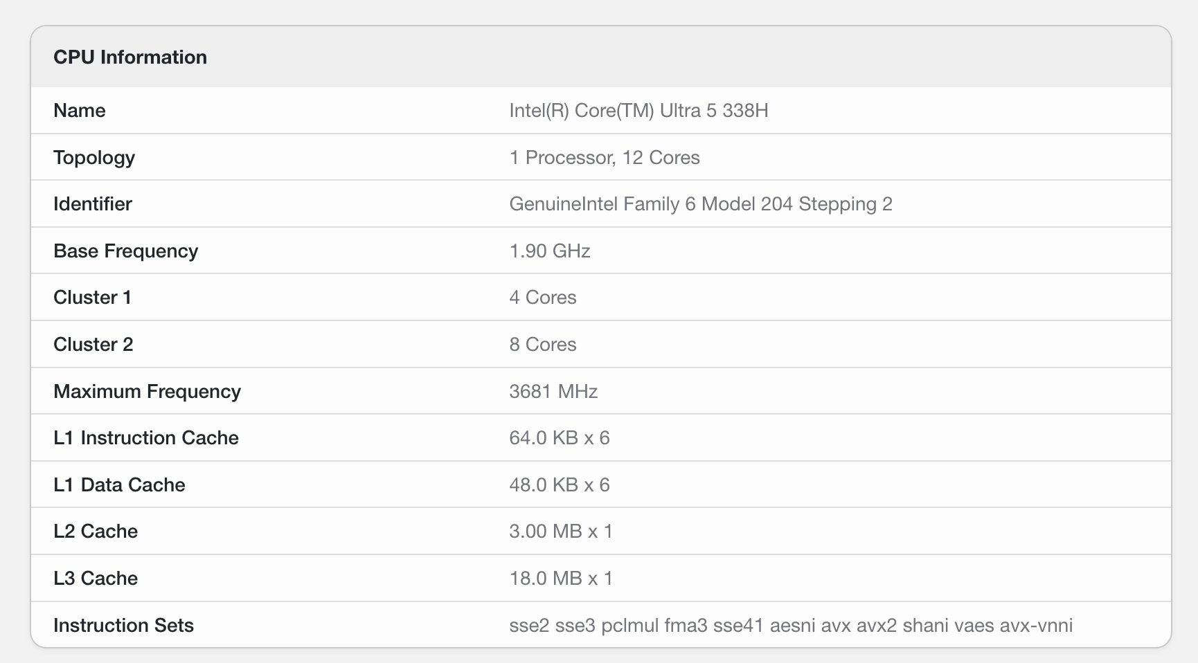Тесты Intel Core Ultra 5 338H засветились в Geekbench: производительность не впечатляет