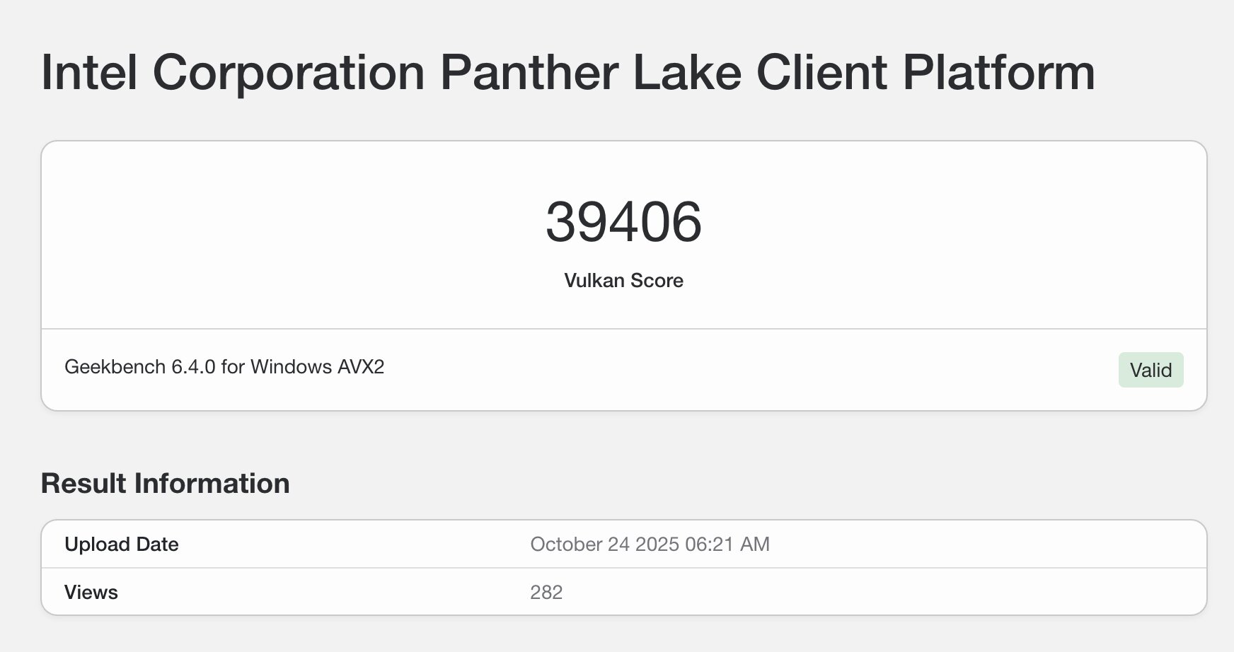 Две недели назад компания Intel официально анонсировала новое поколение процессоров Panther Lake, детально рассказав про новую архитектуру, преимущества свежей графики и улучшения в области ИИ. Но, к сожалению, в рамках анонса производитель не стал говорить ничего конкретного о новых моделях чипов — по сей день официальной информации о нейминге и продуктовой линейке нет. С другой стороны, так как процессоры, очевидно, уже попали в руки обзорщиков, в сети появляются первые упоминания новинок. Например, вчера, 24 октября, в бенчмарке Geekbench появилась запись о прохождении теста моделью Intel Core Ultra 5 338H.