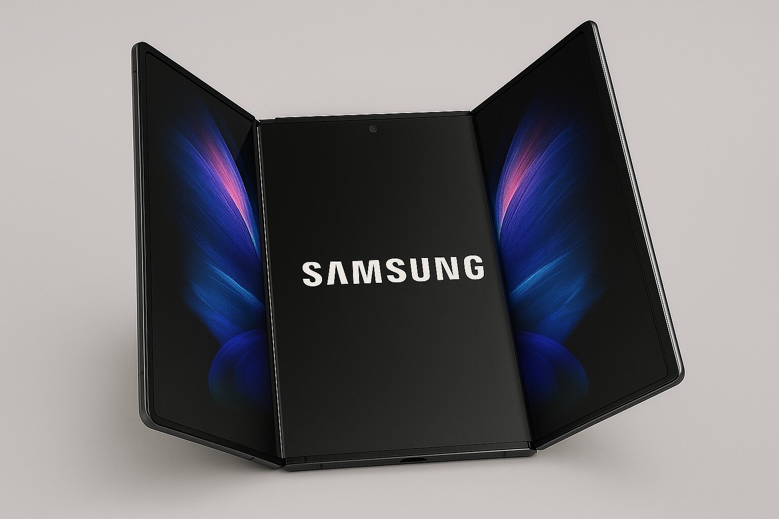 На саммите руководителей стран Азиатско-Тихоокеанского экономического сотрудничества (АТЭС) компания Samsung представила «Tri-Fold Phone» — физический прототип смартфона, который складывается дважды. Устройство и сама концепция были продемонстрированы на стенде южнокорейской компании во время выставки K-Tech Showcase. В отличие от складных смартфонов, представленных сейчас на рынке, новинка от Samsung имеет два шарнира, позволяющих экрану смартфона сгибаться внутрь, и три отдельных дисплея с внешней стороны. Сам прототип в разложенном положении можно сравнить с размерами небольшого планшета.