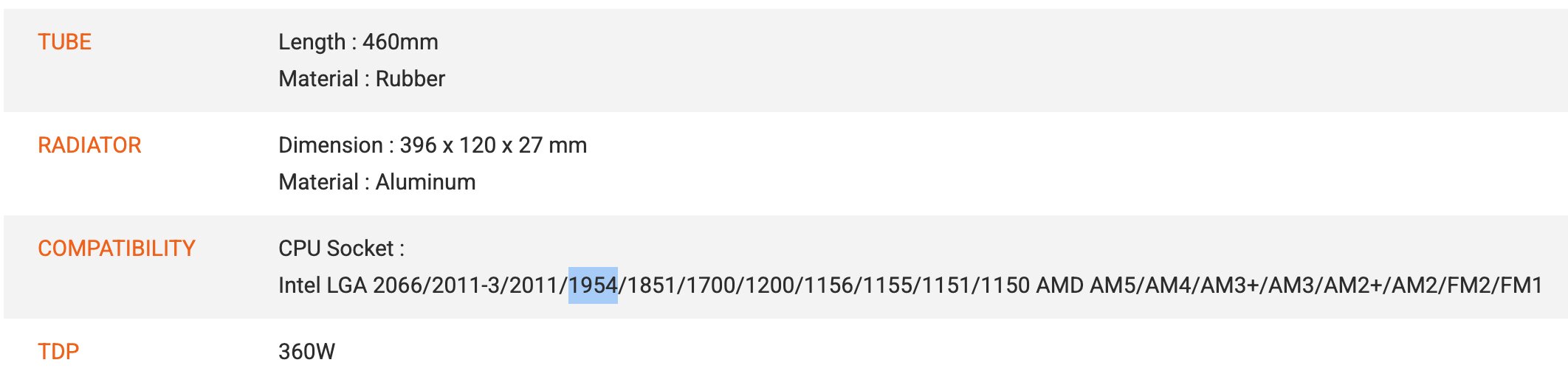 Известный инсайдер с ником momomo_us заметил, что на официальном сайте производителя в описании системы жидкостного охлаждения Minecube 360 Ultra RGB появились детальные характеристики модели — например, производитель отметил, что помпа СЖО оснащена четырьмя 3,95-дюймовыми дисплеями с разрешением 720×720 пикселей. Но самое интересное инсайдер заметил в пункте COMPATIBILITY («Совместимость») — там указаны сокеты, на которые можно поставить данную систему активного охлаждения. И помимо стандартных LGA1851/1700/1200, там указан в том числе и сокет LGA1954, что говорит о полной совместимости старых систем охлаждения с чипами на платформе Nova Lake-S.