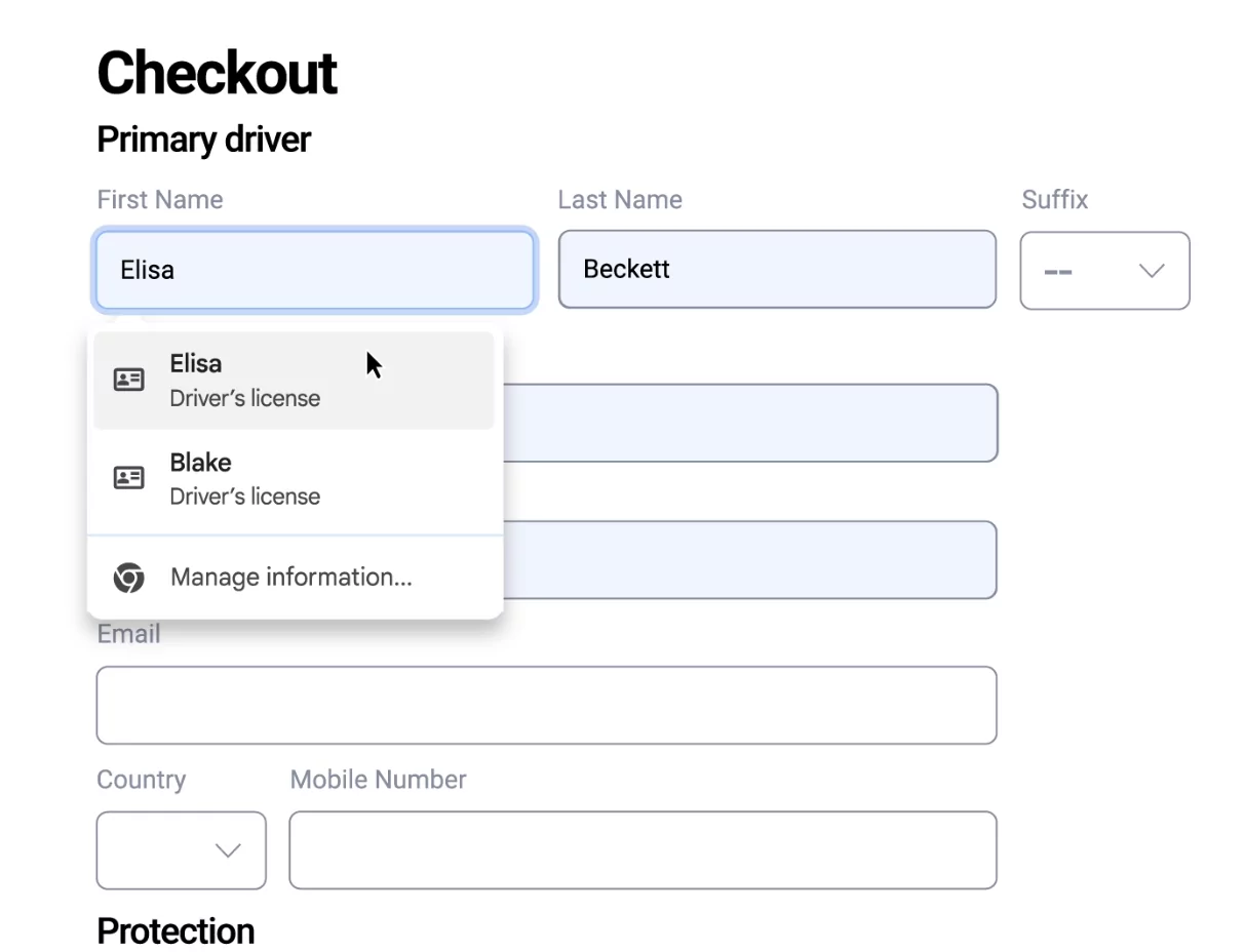 Пользователи ПК, у которых включена функция расширенного автозаполнения, будут видеть номер своего паспорта и водительского удостоверения, определённые сведения о транспортном средстве (например, номерной знак или VIN-номер) и другую информацию на веб-страницах при появлении запроса на её ввод. Google утверждает, что Chrome теперь лучше распознаёт сложные формы и разнообразные требования к форматированию, что должно повысить точность при заполнении данных.