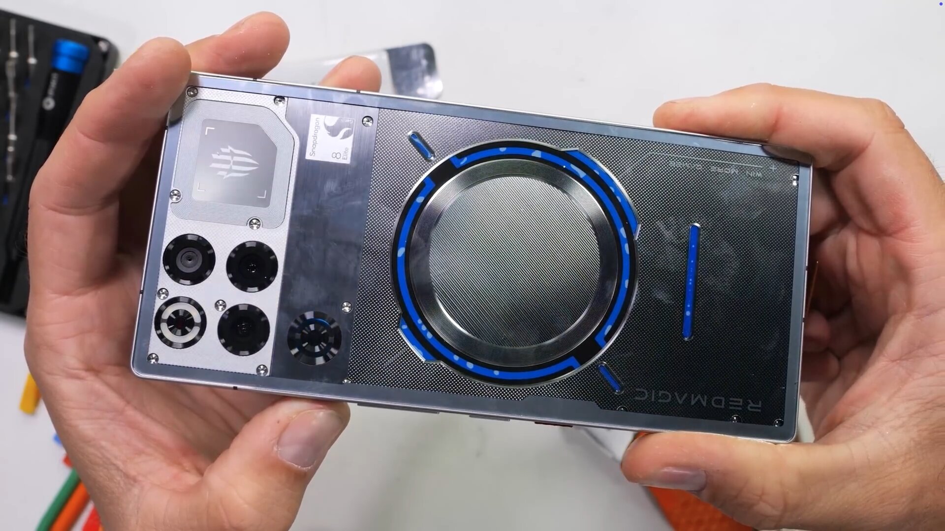 Кроме того, на задней панели можно заметить ключевую фишку смартфона — жидкостную систему охлаждения, которая отвечает за эффективное рассеивание тепла в процессе повышенных нагрузок. Благодаря прозрачному стеклу пользователь может видеть, как по трубкам СЖО двигается синяя жидкость с вкраплениями белого цвета — смотрится очень эффектно. Более того, по завершению теста блогер разобрал данную конструкцию — оказалось, под декоративной пластиной скрыто ещё больше трубок.