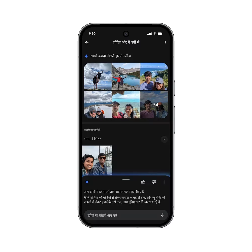 Среди интересных нововведений стоит выделить инструмент поиска по библиотеке и фотографиям пользователя под названием Ask Photos — его преимущество в том, что ИИ распознаёт естественный язык и довольно точно находит нужные кадры.