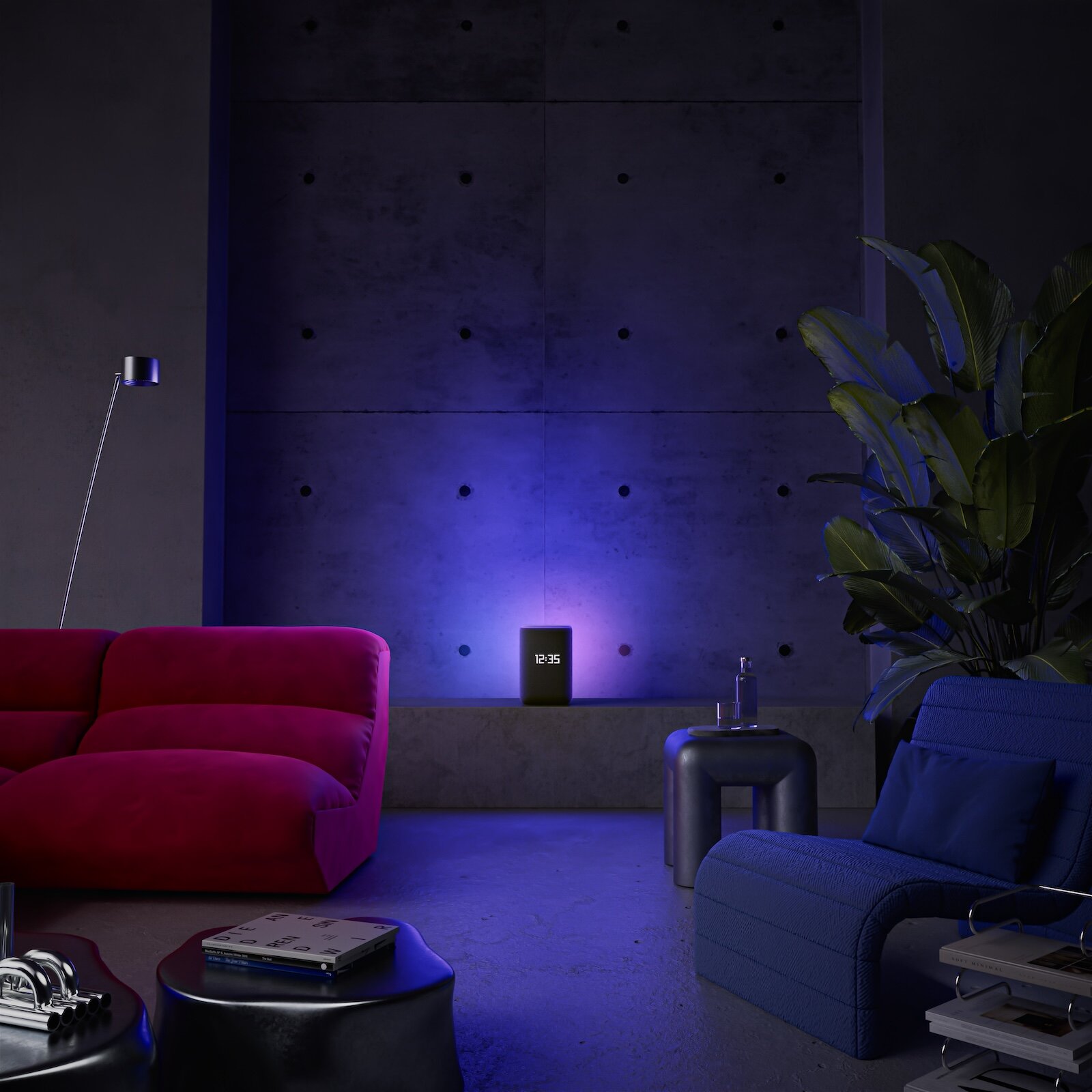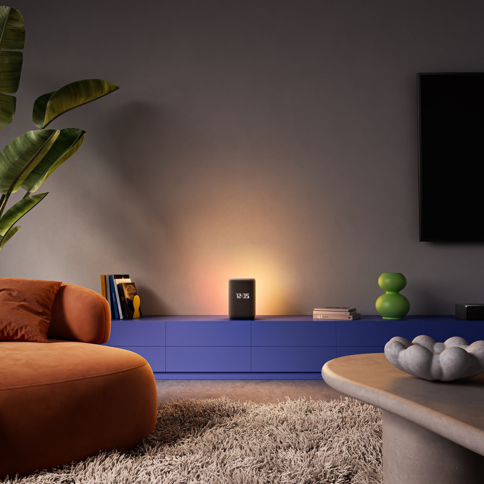 Кроме того, новинка обзавелась эмбиент-подсветкой — она расположена на тыльной панели и поддерживает 16 миллионов цветов. Представители Яндекса рассказали, что каждый из двенадцати светодиодов на задней крышке оснащён специальной линзой, которая направляет свет вверх и в стороны, благодаря чему освещение выглядит более равномерным, с плавными переходами между оттенками. И особенно эффектно эта подсветка будет выглядеть в темноте, если разместить устройство на небольшом расстоянии от стены. Более того, «из коробки» модель предлагает несколько готовых режимов подсветки — есть «свеча», «лава-лампа», «Северное сияние» и многое другое.
