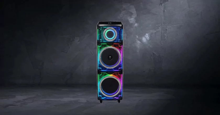 Разъёмы Jack 6.3mm позволяют подключить к колонке гитару и пару микрофонов для организации караоке. Присутствуют пятиполосный графический эквалайзер, управление через панель и с помощью пульта дистанционного управления, а также возможность записи аудио. Светодиодная подсветка вокруг динамиков, спрятанная за прозрачной лицевой панелью, добавляет ярких акцентов, создавая уникальную атмосферу праздника.