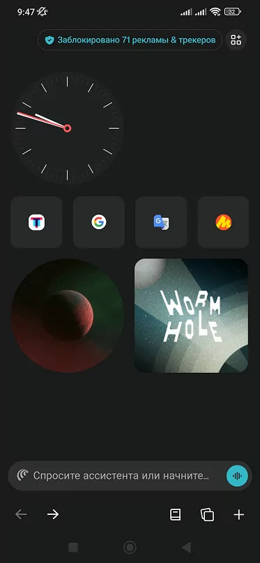 И, что немного странно, софт позволяет настраивать главную страницу браузера — можно добавить часы, режим «Дзен» и карточки наиболее популярных сайтов пользователя.