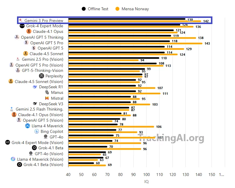 Gemini 3 Pro набрала 130 баллов в IQ-тесте: это больше, чем у 98% людей