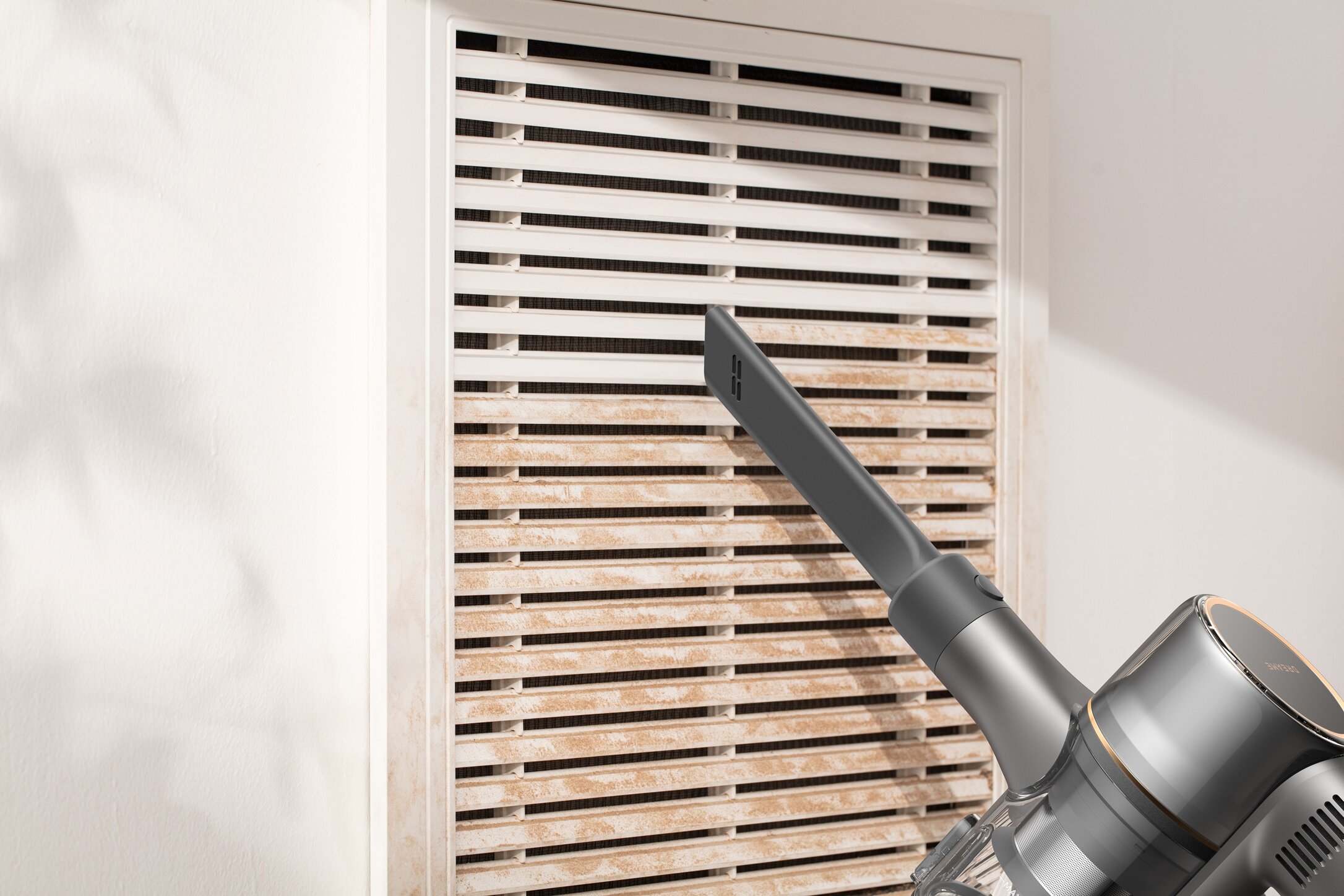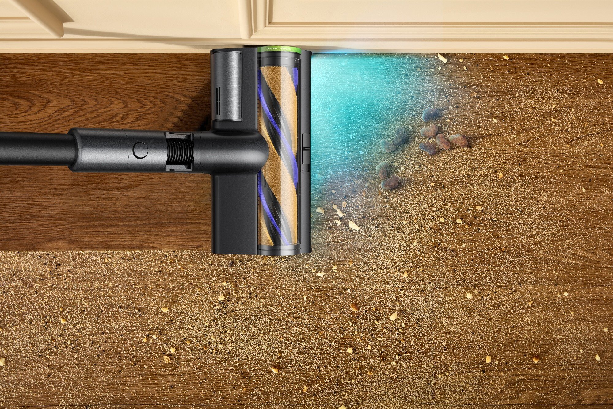 Щётка нового поколения с технологией CelesTect имеет угол освещения до 140° и дальность подсветки до 30 см. Это позволяет легко заметить загрязнения, которые обычно не видны простым взглядом. Конструкция из мягкого ролика и классической насадки для пола делает уборку более эффективной на разных покрытиях. Чтобы волосы не наматывались на ролик, предусмотрена система Anti-Tangle, а технология Clean-to-Edge позволяет пылесосу работать вплотную к стенам и в узких местах. Благодаря дополнительному впускному отверстию, которое можно регулировать, пылесос автоматически подстраивается под тип мусора — мелкую пыль, крошки или крупные частицы.
