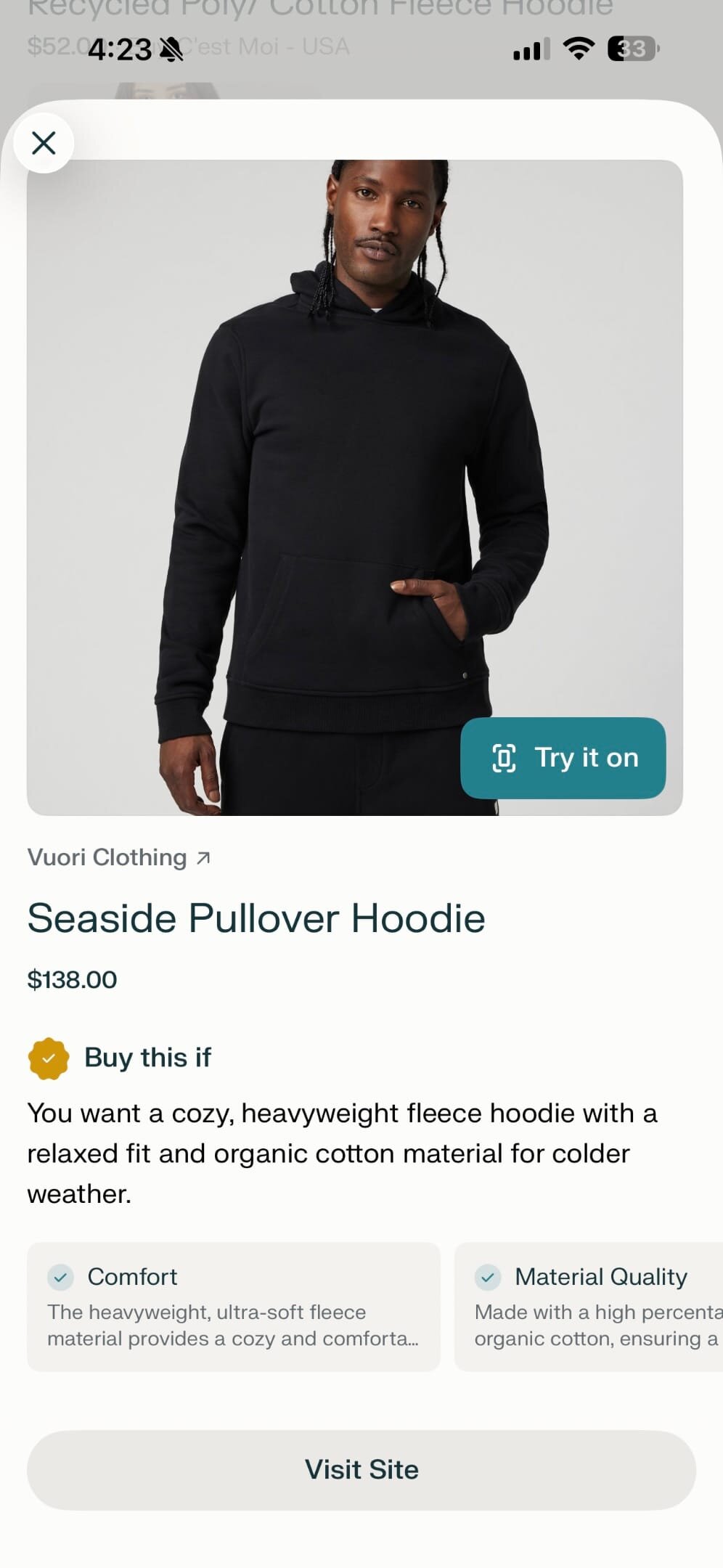 После этого во время поиска различных товаров посредством мобильного приложения Perplexity (вероятно, в будущем функция будет расширена и на веб-интерфейс, но пока что новостей об этом нет) пользователь увидит рядом с миниатюрой куртки, штанов, кроссовок и всего в таком духе кнопку «Try it on». И нажав на неё, искусственный интеллект сгенерирует изображение с этим элементом одежды на цифровом аватаре человека.