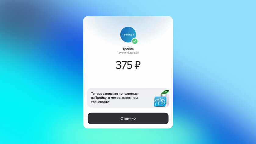 А по завершению оформления абонемента физическую карту «Тройка» достаточно будет приложить к турникету в метро или к специальному валидатору, установленному в автобусах. Кроме того, в Яндекс Go на главном экране сервиса «Транспорт» будет отображаться карта «Тройка» пользователя, а также оставшееся количество дней действия проездного. Это удобно, так как меньше шансов пропустить дату окончания абонемента, плюс сразу из приложения можно этот абонемент всего в несколько нажатий продлить.