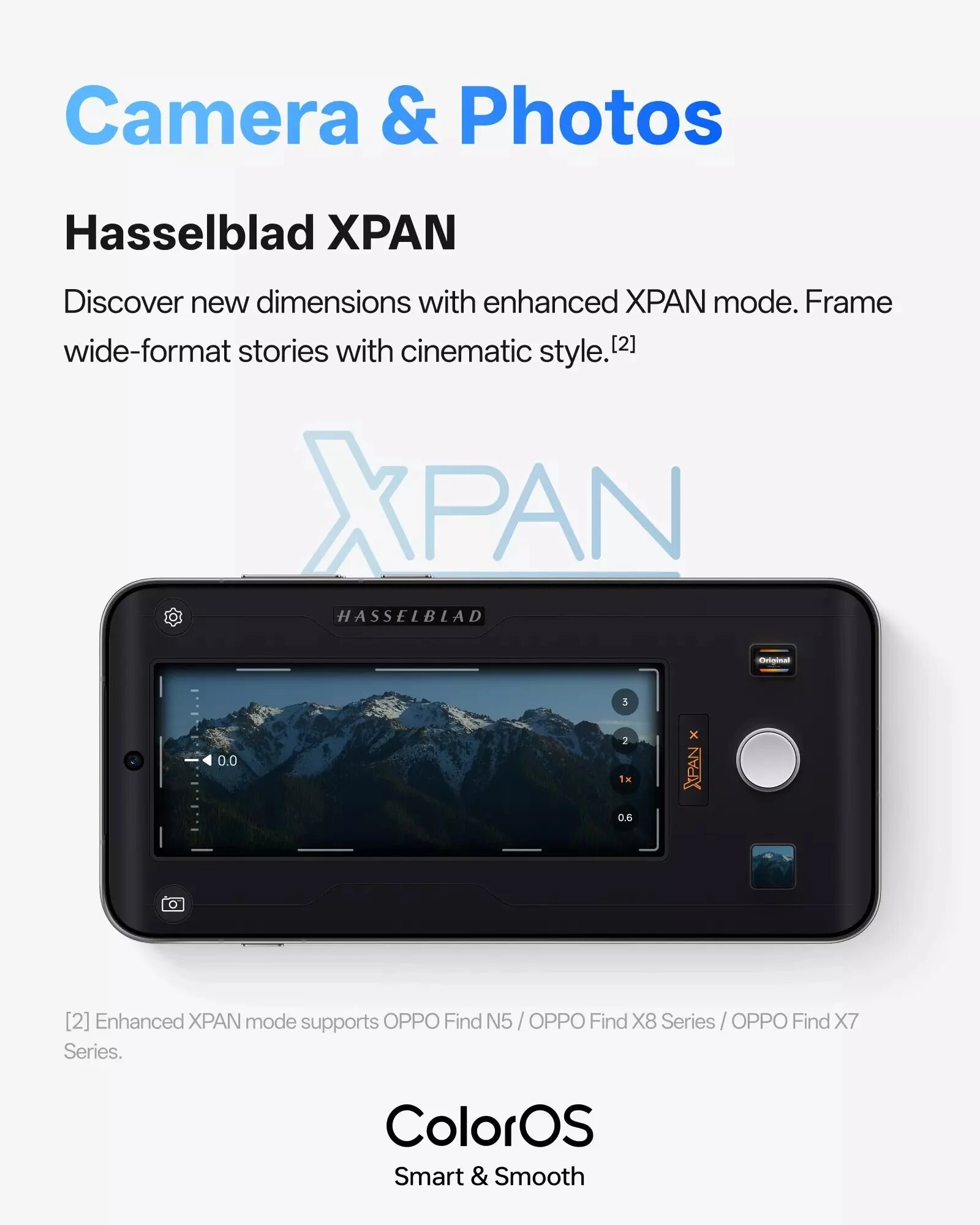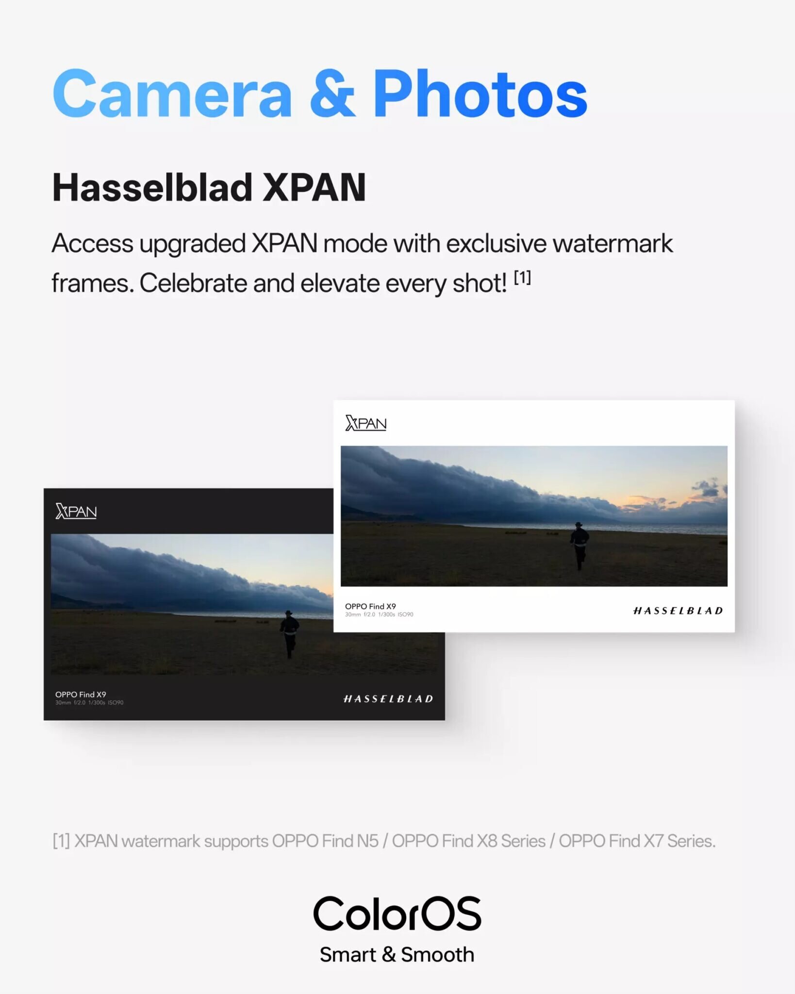 Самое большое внимание создатели кастомной прошивки уделили качеству фотографий. Обновлённый режим Hasselblad XPAN для широкоформатной съемки позволяет кадрировать панорамные снимки с лучшей глубиной и балансом, превращая пейзажи и уличную фотографию в изображения в кинематографическом стиле. Появились новые рамки для фотографий в стиле XPAN, которые придают широкоформатным снимкам более изысканный вид.