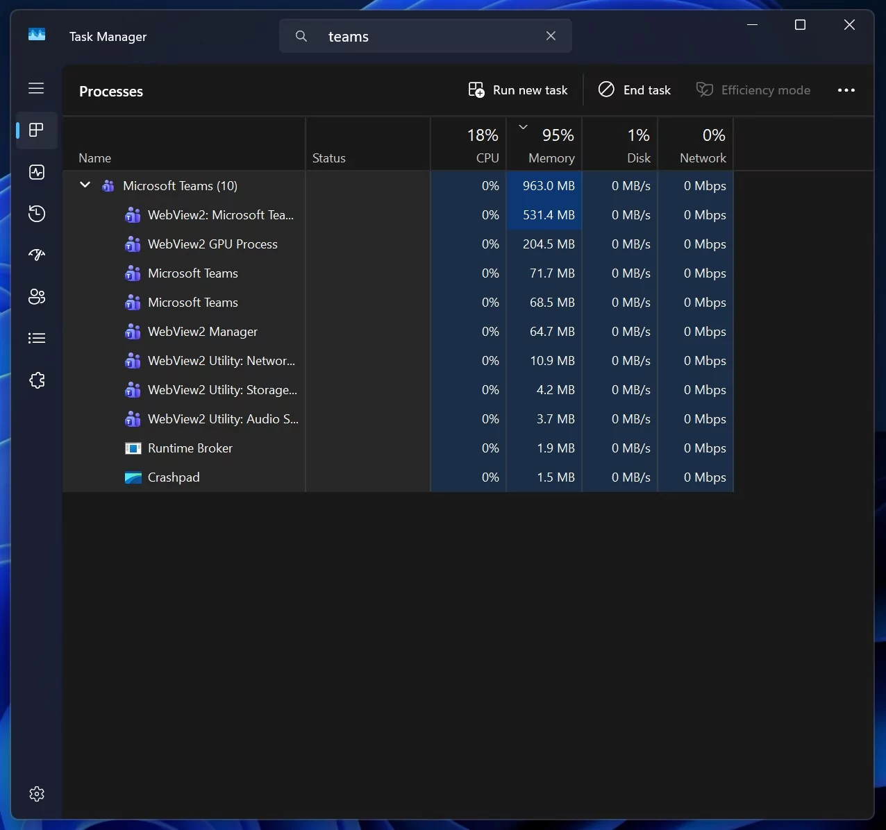 Пользователи Teams давно жалуются, что приложение потребляет слишком много системных ресурсов. В режиме ожидания Teams может использовать до 1 ГБ оперативной памяти, а при подключении к видеоконференции расход ОЗУ существенно возрастает. При этом сам клиент запускается медленно и часто реагирует с задержками даже на современных ПК. Представители Microsoft подтвердили Windows Latest, что в январе 2026 года выйдет обновление с новым подходом к работе Teams. У приложения будет сразу два процесса: основной процесс ms-teams.exe по-прежнему будет отвечать за интерфейс, чаты, сообщения и другие функции приложения. Аудио- и видеозвонки перенесут в отдельный процесс под названием ms-teams_modulehost.exe.