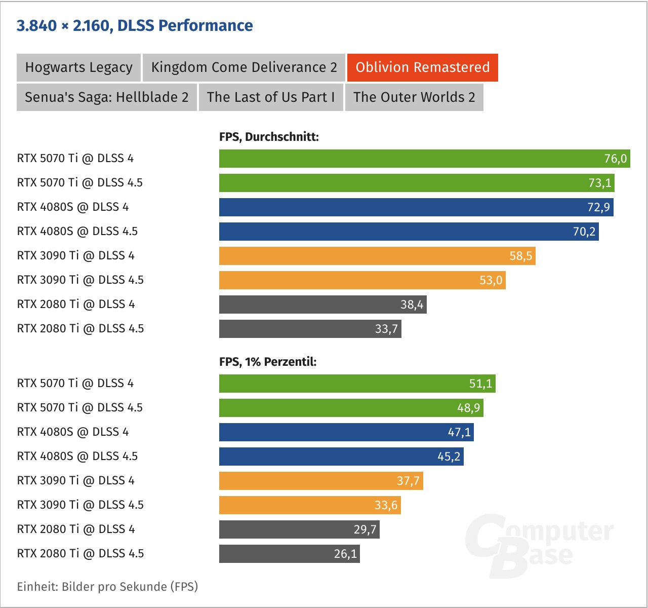 По данным ComputerBase, новая технология на пресете «Model M» действительно работает лучше, чем DLSS 4, если речь идёт о финальном качестве изображения. С DLSS 4.5 пропали шумы в тенях, был улучшен рендеринг воды, а также исправлена проблема с мерцанием на растительности. Соответственно, в результате технология апскейлинга выдаёт более «чистое» изображение, но ценой заметного снижения производительности по сравнению с DLSS 4. Например, на видеокартах RTX 5070 Ti и RTX 4080 Super частота кадров упала на 4-5%, а на RTX 3090 Ti и RTX 2080 Ti снижение в среднем составляет целых 12%. Это внушительно, но дальше ситуация становится ещё менее приятной.