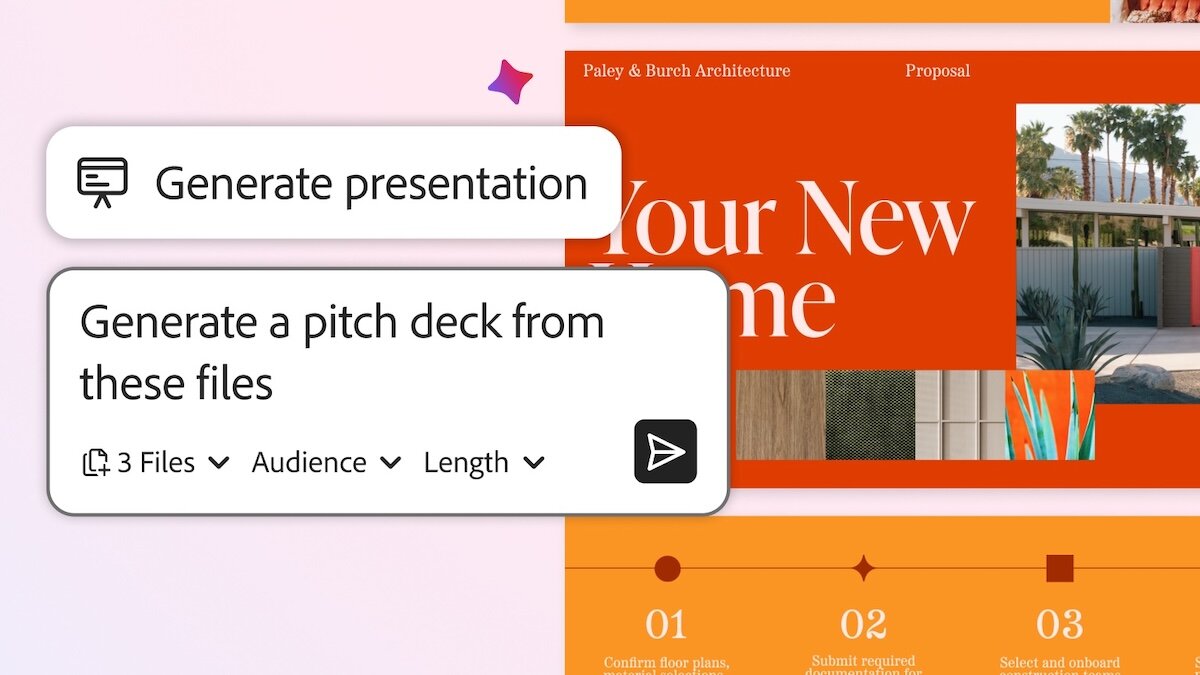 Завершает же перечень важных нововведений функция «Создать презентацию», название которой говорит само за себя. В Acrobat пользователь может предоставить искусственному интеллекту свои файлы со всеми необходимыми данными, после чего попросить на базе этой информации сгенерировать полноценную презентацию. Система создаст план презентации, а затем спросит, стоит ли переходить к финальной генерации. При этом можно определить продолжительность презентации и тон повествования, плюс, конечно, финальный результат можно редактировать, меняя шрифты, анимации и само содержание.