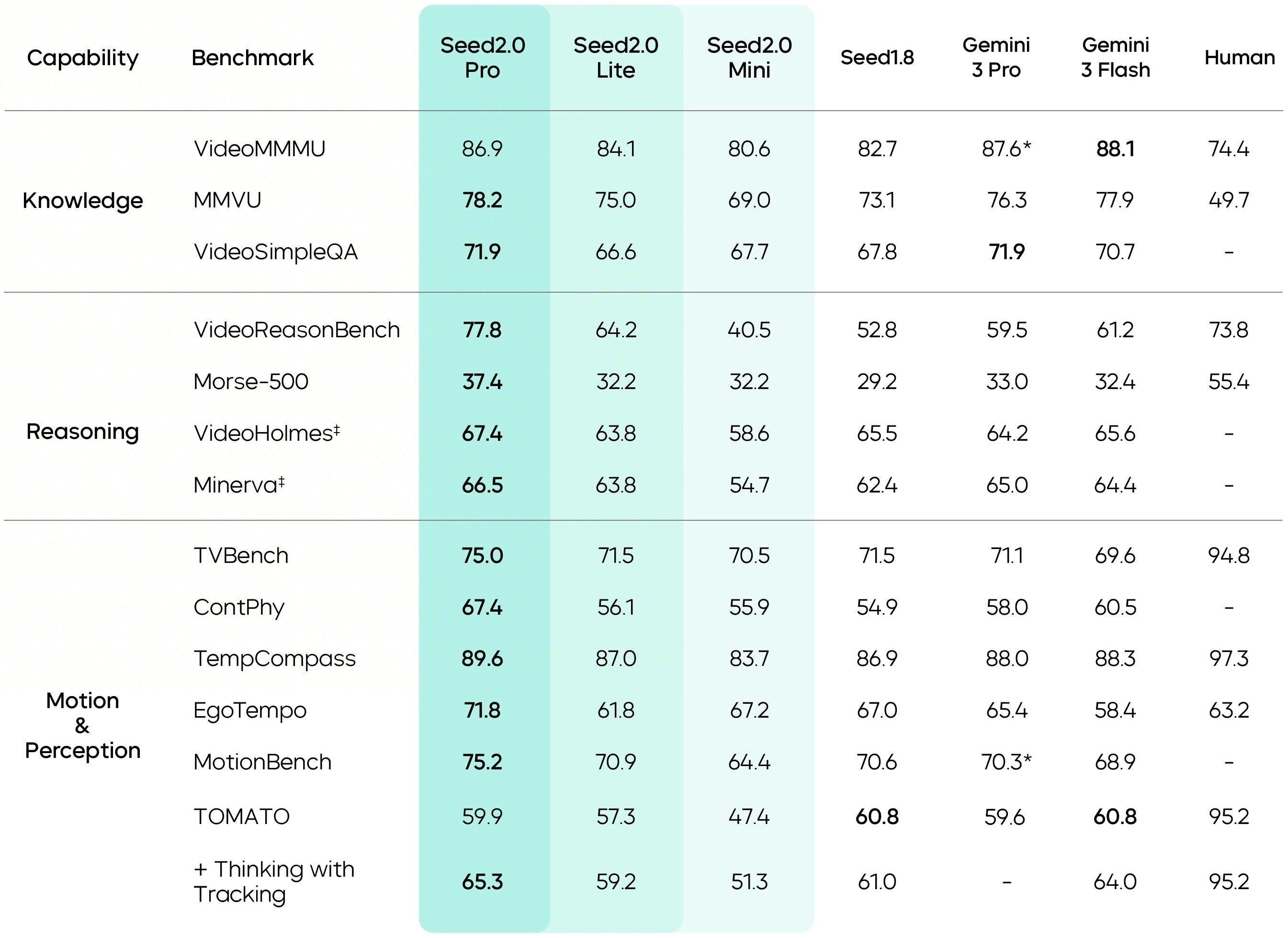 И чтобы удовлетворить актуальные запросы пользователей, серия Seed 2.0 была оптимизирована по трём ключевым направлениям. Во-первых, разработчики сделали акцент на более глубоком визуальном и мультимодальном понимании контента — было значительно повышено качество анализа сложных документов, таблиц, графиков, видеоконтента, плюс визуальная обработка информации стала более точной. Во-вторых, в Seed 2.0 разработчики сделали упор на более точном выполнении сложных инструкций — задачи с множественными ограничениями и длинными цепочками действий выполняются гораздо лучше. В теории, так как ошибок у ИИ будет меньше, это должно положительно сказаться на эффективности моделей.
