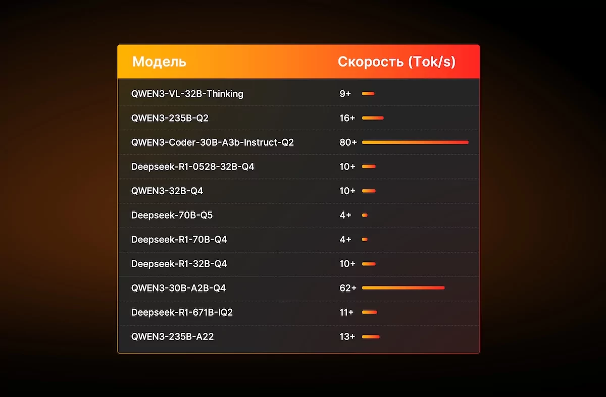 - Оперативная память: 128 ГБ (8× 16 ГБ), LPDDR5X, 8000 МТ/сек.