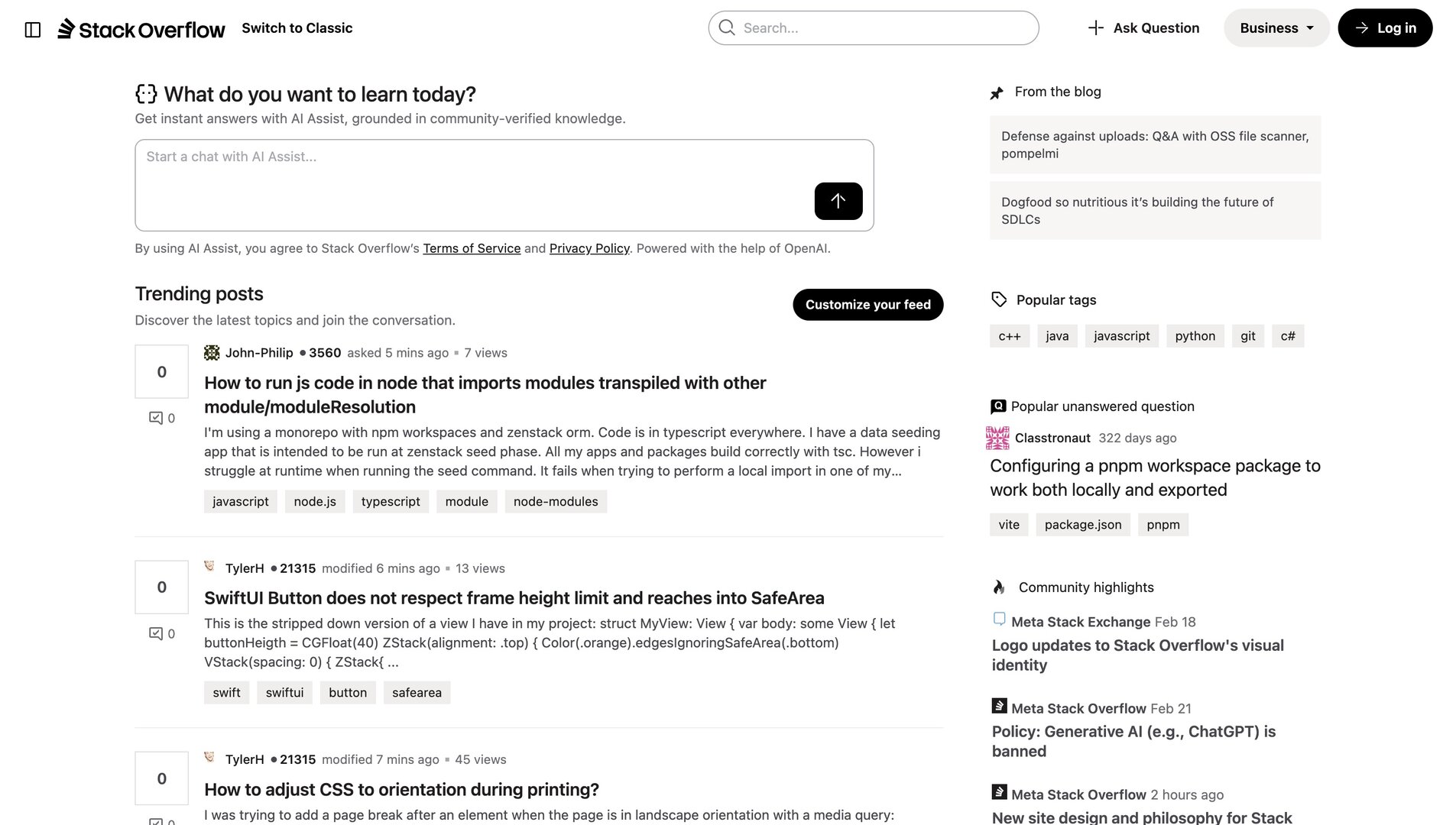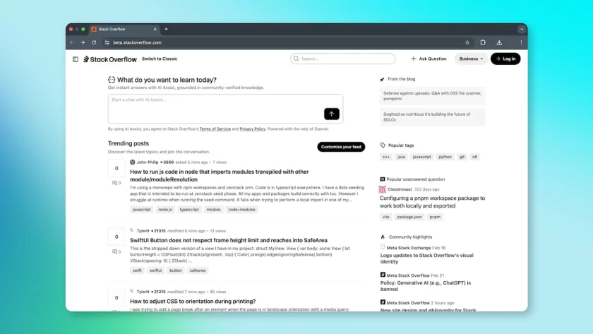 Stack Overflow тестирует новый дизайн интерфейса с акцентом на чат с ИИ