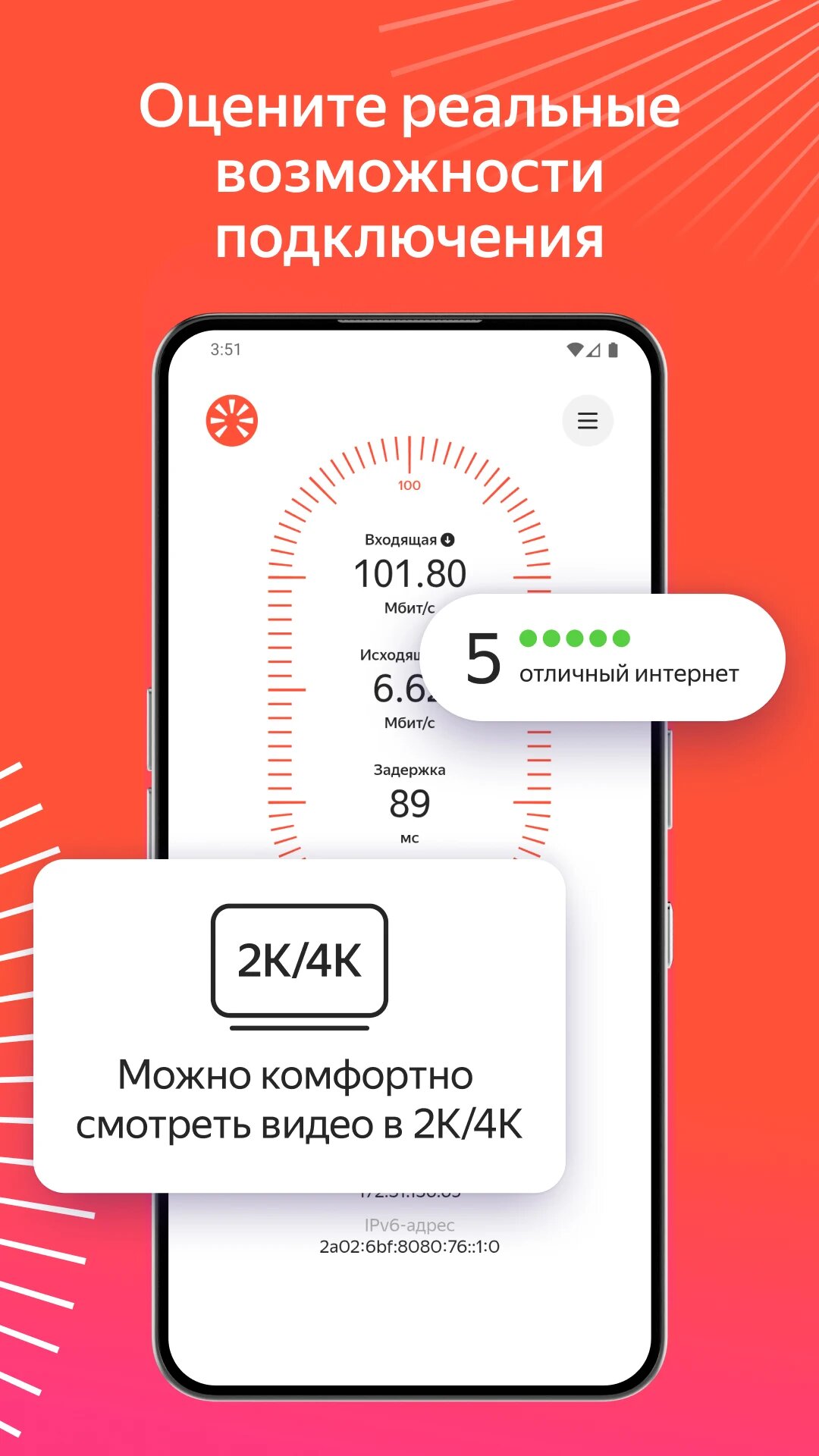 «На основе этих данных сервис подсказывает, например, в каком качестве можно посмотреть видео. Также в приложении можно посмотреть всю информацию о подключении: IP-адрес, версию браузера, разрешение экрана и так далее», — говорится в официальном пресс-релизе компании.