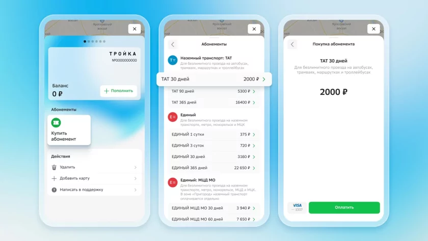 Кроме того, в мобильном приложении «2ГИС» появилась и другая очень полезная опция — пользователь может здесь же приобретать абонементы на проезд на различных видах транспорта. Например, есть абонемент на безлимитный проезд на наземном транспорте (автобусах, трамваях, маршрутках и троллейбусах), «Единый» для безлимита на наземный транспорт, метро, монорельс и МЦК, «Единый: МЦД МО» и так далее. На текущий момент доступны абонементы на сутки или трое, 30, 60, 90 и 365 дней — в приложении сразу отображается цена и оплатить абонемент можно здесь же в приложении. В теории, это гораздо быстрее и понятнее.