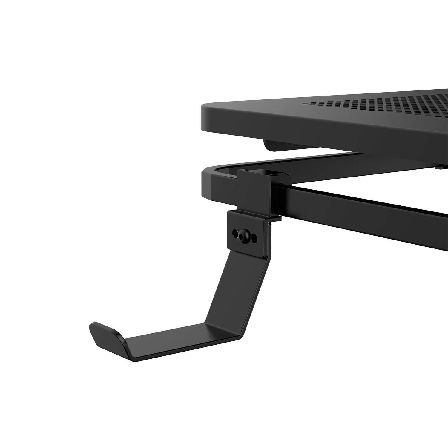 И, что немаловажно, стол поставляется с рядом съёмных элементов — они позволяют кастомизировать стол под свои нужды. Например, есть крюк для наушников (их можно удобно вешать на стол и не искать свободное место), а также подстаканники с регулировкой по направляющим.