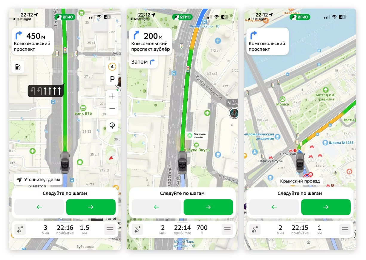 Когда классическая навигация, которая зависит от точного определения координат, теряет эффективность, «2ГИС» предлагает перейти в режим «Шаг за шагом». Новый подход заключается в том, чтобы не отслеживать местоположение пользователя постоянно, а использовать визуальные ориентиры и последовательность действий. По сути, навигация превращается в чек-лист — пользователь сверяется с окружающей обстановкой, подтверждает прохождение точек и переходит к следующему этапу маршрута.