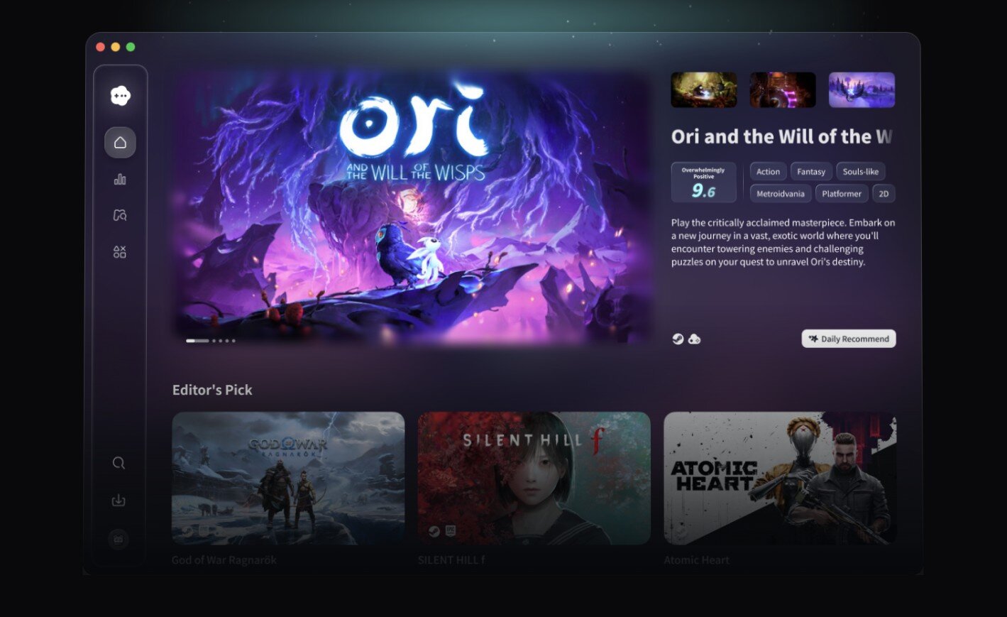 GameHub для macOS даёт возможность авторизоваться в аккаунте Steam, сохраняя доступ к ключевым функциям сервиса, включая облачные сохранения и учёт времени, проведенного в игровых сессиях. Причём поддерживается привязка нескольких учётных записей Steam.