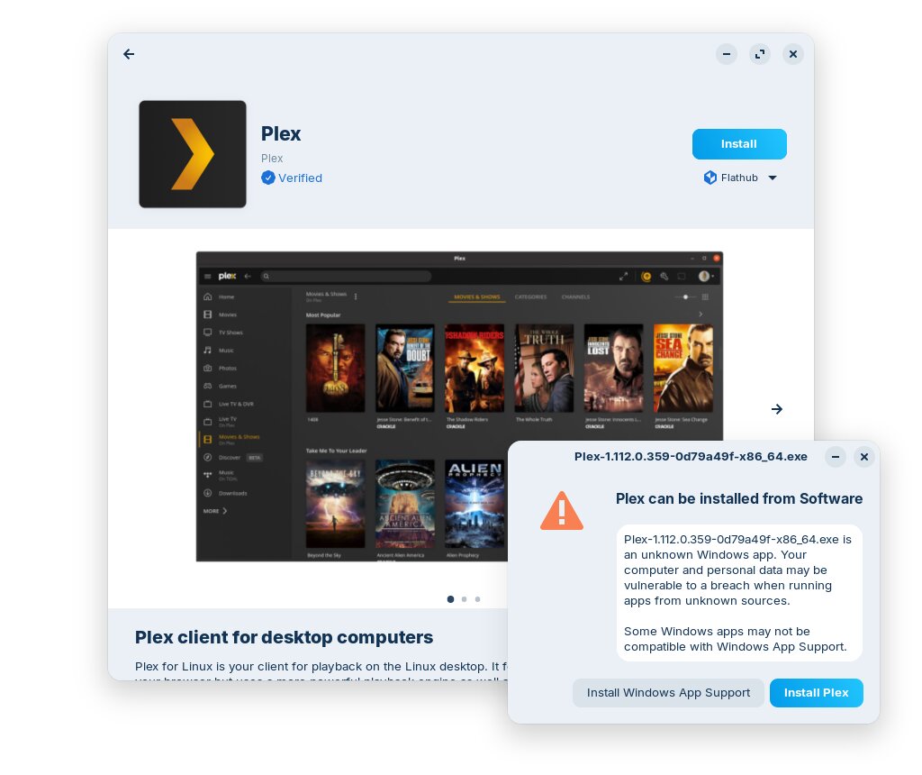 Функция обнаружения в Zorin OS достаточно гибкая. Например, если пользователь пытается установить Plex EXE, операционная система перенаправит его в магазин программного обеспечения. А если же он попытается запустить установочный файл приложения, разработанного только под Windows, Zorin OS предложит имеющиеся альтернативы. Так, например, при попытке установить Microsoft Outlook, пользователя перенаправят к Evolution Mail.