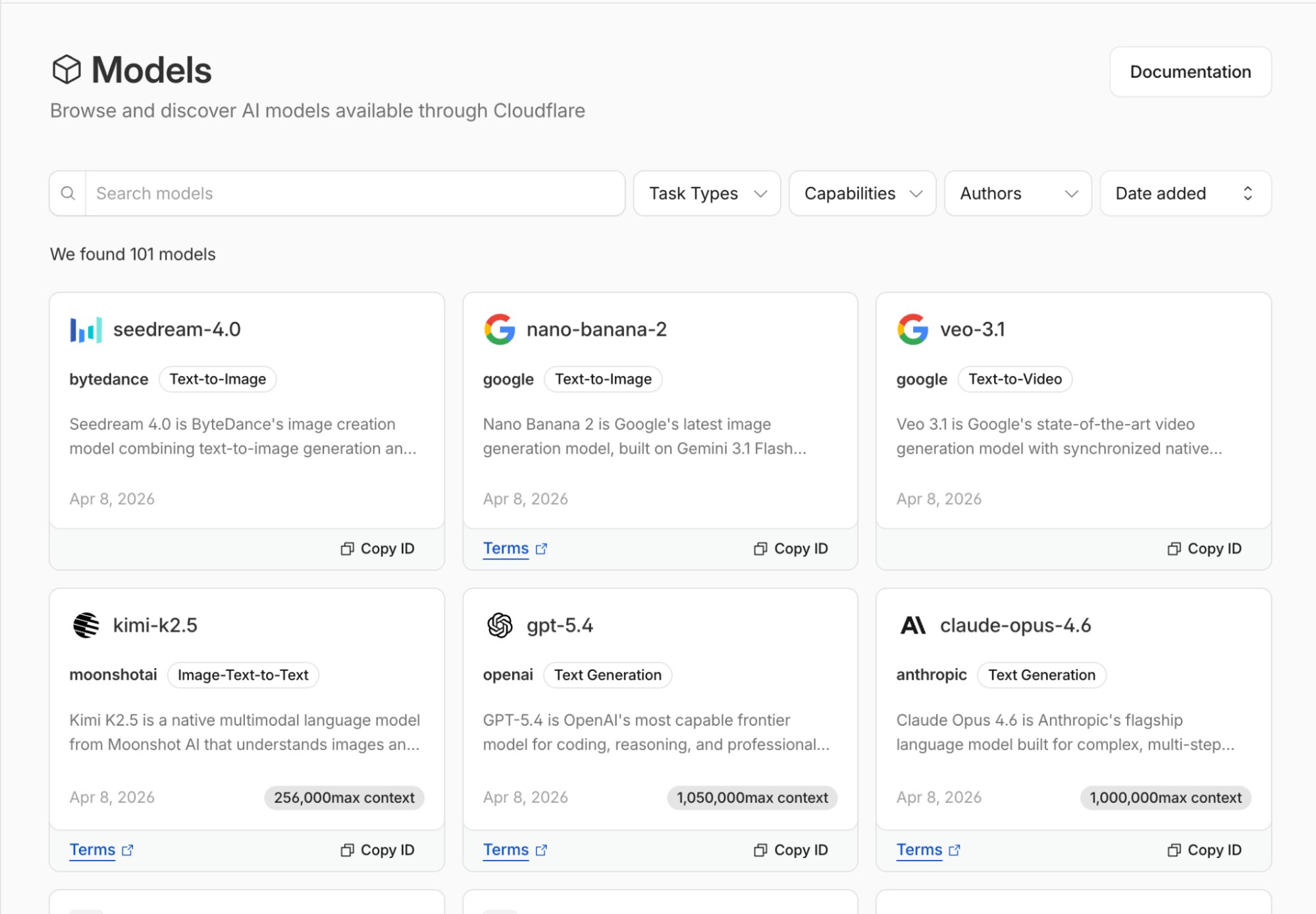 В Cloudflare объяснили, что пользователь может просмотреть каталог доступных моделей, чтобы найти лучший вариант для своей конкретной задачи — есть как модели с открытым исходным кодом, так и проприетарные модели от ведущих разработчиков на рынке. На данный момент на платформе представлены решения от Alibaba Cloud, AssemblyAI, Bytedance, Google, InWorld, MiniMax, OpenAI, Pixverse, Recraft, Runway и Vidu — включая модели для генерации изображений, видео и речи. То есть пользователи смогут создавать в том числе мультимодальные приложения, что существенно расширяет возможности платформы.