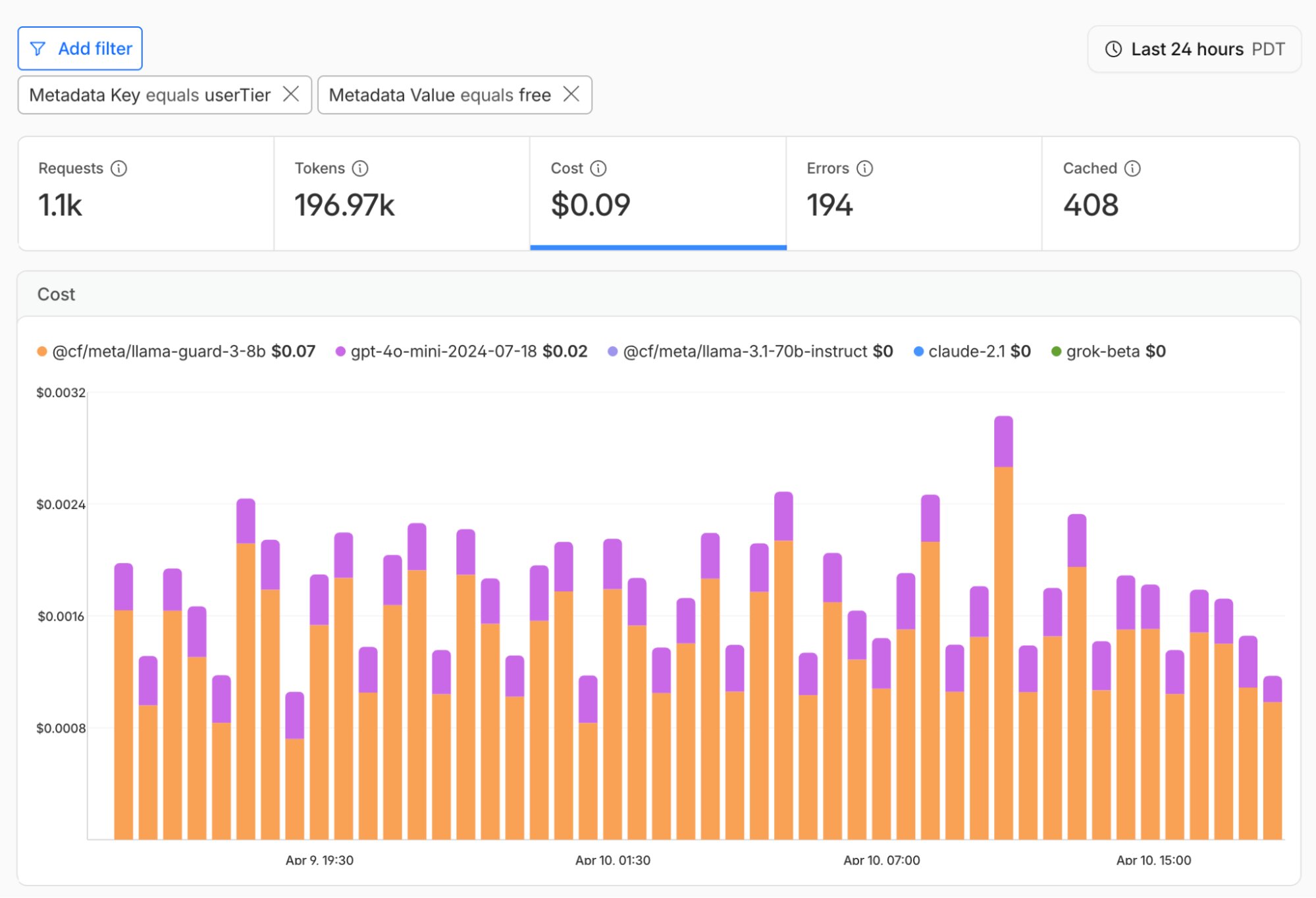 «Добавляя кастомные метаданные к своим запросам, вы получите подробную разбивку затрат по наиболее важным для вас атрибутам — расходы на бесплатных и платных пользователей, расходы по отдельным клиентам или рабочим процессам в вашем приложении», — объяснили в Cloudflare.