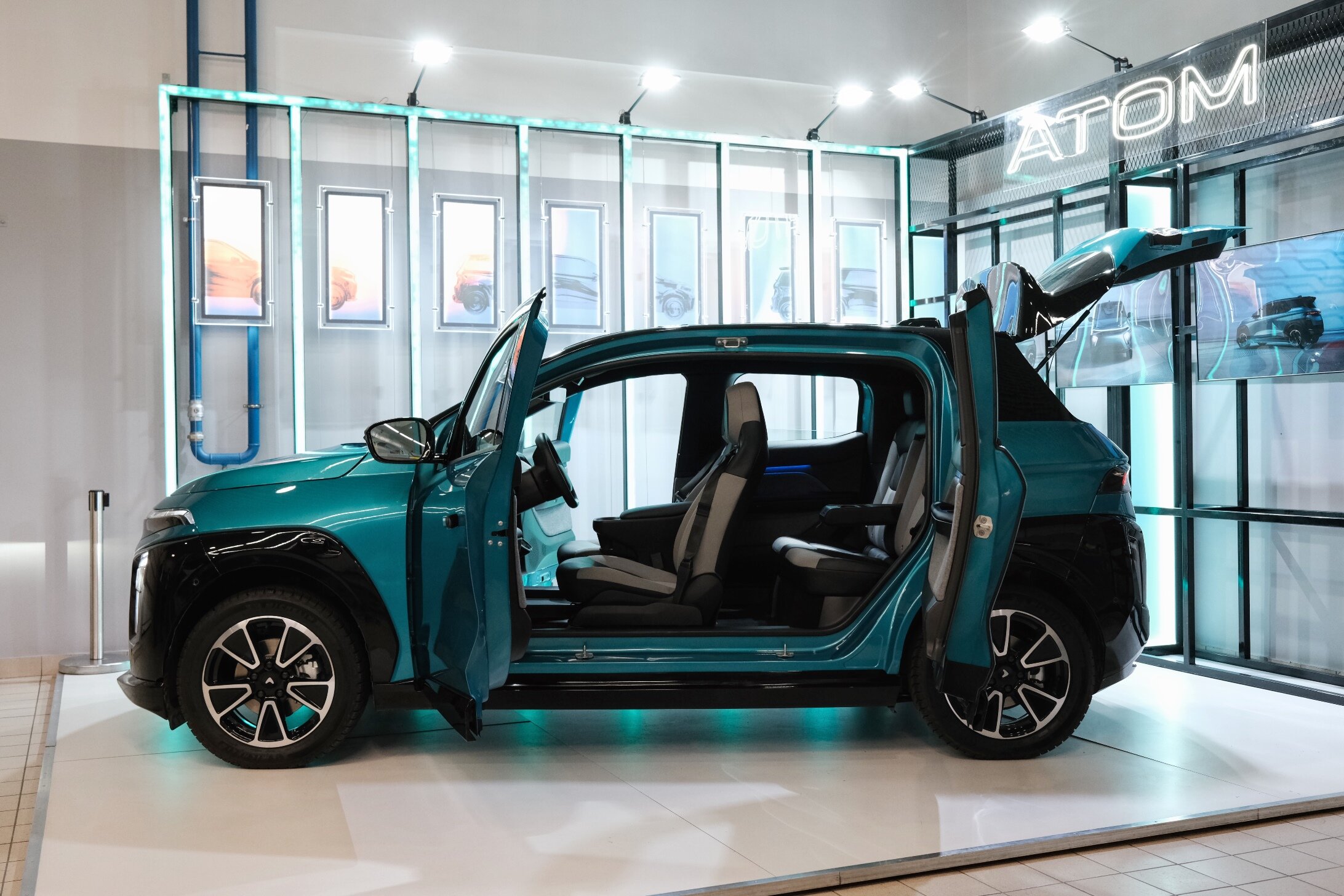 Атом позиционируется как первый серийный электромобиль российского производства. Разработчики делают акцент на технологичности, функциональности и возможностях персонализации. Концепция модели предполагает новый формат взаимодействия водителя с автомобилем, который сравнивают с использованием современных гаджетов. Модель ориентирована не только на частных пользователей, но и на корпоративный сегмент. В частности, планируются версии для такси, каршеринга и государственных структур. Проект реализуется при поддержке Фонда развития промышленности.