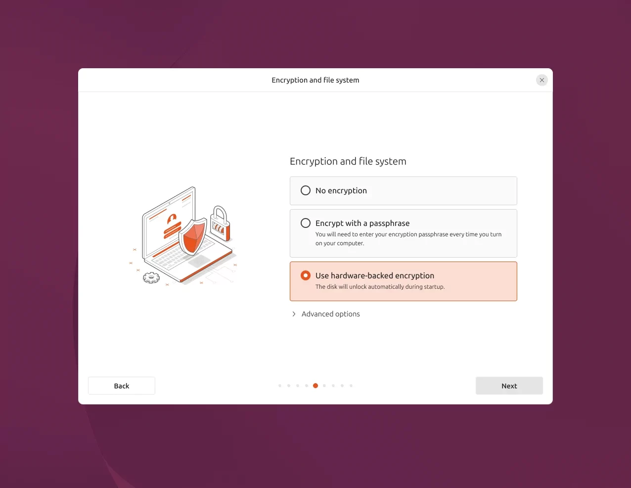 Одним из заметных изменений стал переход к более современным версиям системных библиотек и инструментов разработки. В системе обновлены компиляторы, утилиты и инструменты, что делает платформу более удобной для разработчиков. Отдельный акцент сделан на безопасности. В Ubuntu 26.04 LTS расширены механизмы изоляции приложений, усилены политики доступа и внедрены дополнительные средства защиты памяти. Также улучшено шифрование и безопасная загрузка на уровне системы. Теперь в установщике Ubuntu доступна поддержка TPM. Привязка шифрования к встроенному в TPM-чипу обеспечивает привязку диска к конкретному устройству, что существенно повышает защиту от атак с использованием физического доступа.