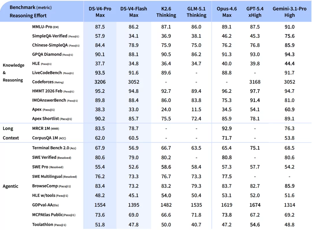 DeepSeek V4 Flash предоставляет возможности логического мышления, которые близки к версии Pro. Эта модель демонстрирует сопоставимую производительность при выполнении простых агентских задач, но при этом более экономичная при использовании через API.