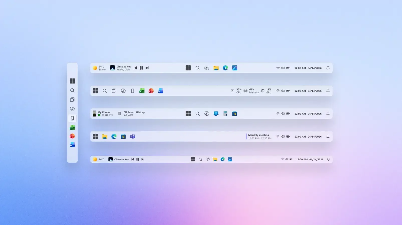 Панель задач является модульной, и она отображает намного больше дополнительной информации по сравнению с существующей версией Windows 11. С одной стороны, такой поток информации может показаться избыточным, однако, как считает Радитья Арьяпутра, пользователи должны получить возможность полной настройки данного элемента пользовательского интерфейса.
