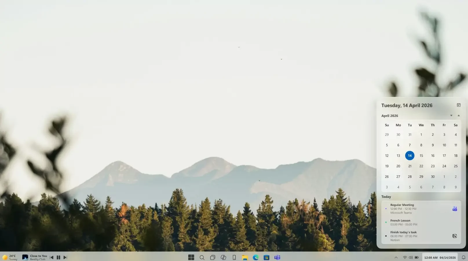 Наконец, календарь на панели задач выглядит немного аккуратнее, потому что он не сливается с уведомлениями и фокусируется только на отображении своих основных функций, а также встреч.