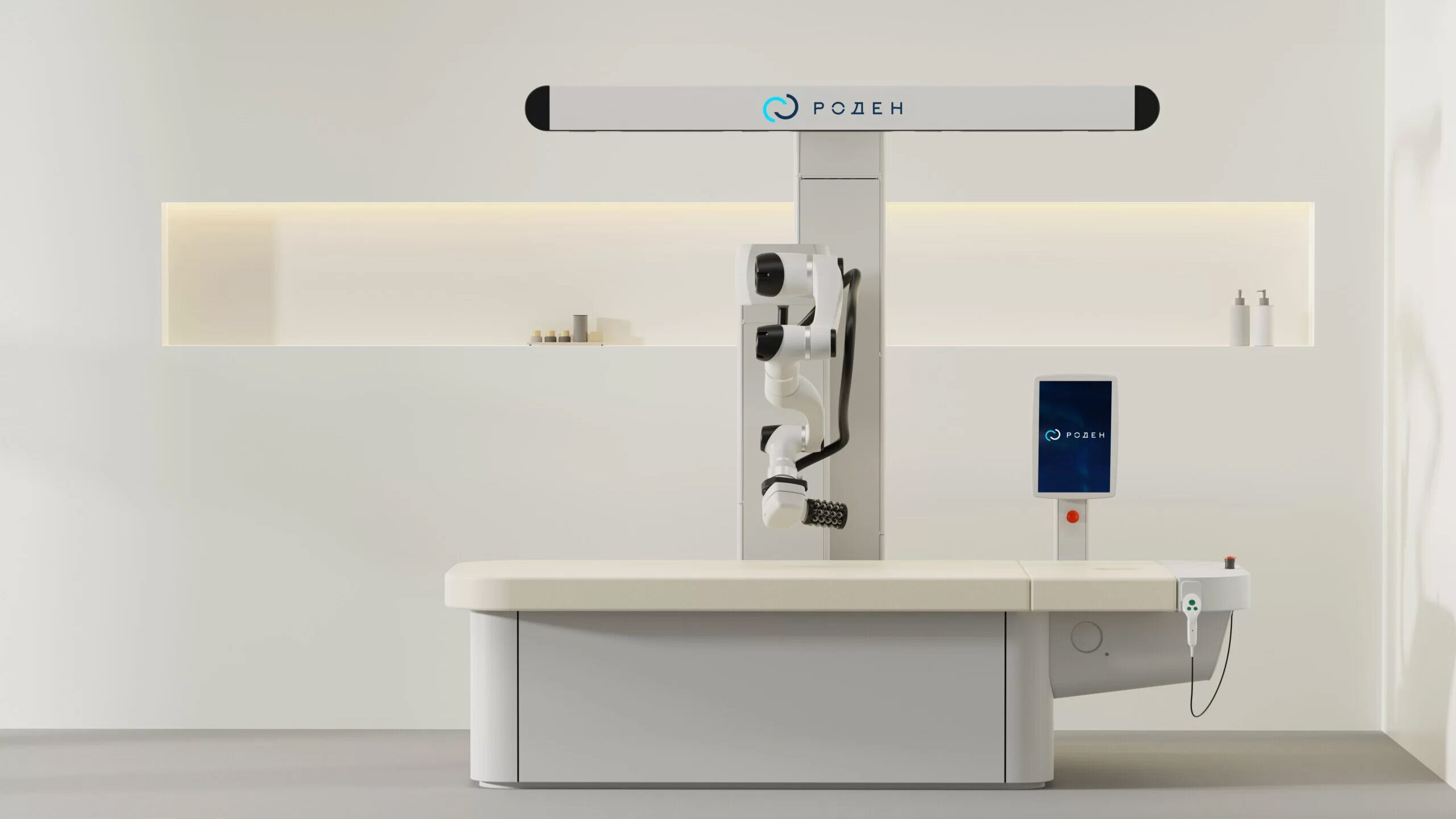 Российские разработчики создали первого в стране робота-массажиста, который, что уже не удивительно в наше время, работает на базе алгоритмов искусственного интеллекта. Комплекс «Роден» (Roden) состоит из массажного стола и роботизированной руки с массажной манипулой. Манипула — это специализированная насадка для аппаратных процедур, например, LPG-массажа. Она представляет собой устройство с вакуумной камерой и вращающимися роликами, которые захватывают кожную складку и механически её разминают.