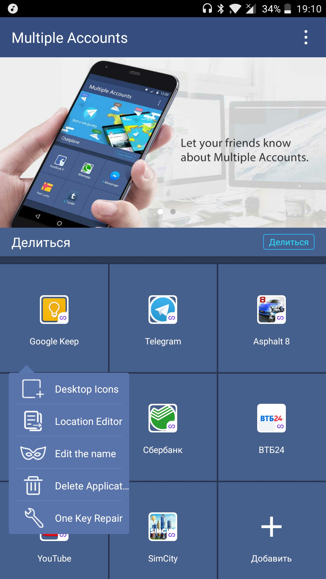 2Accounts 2.2.6 Приложения / Android / Утилиты 2Accounts — утилита для создания клонов приложений в один клик. Принцип основан на создании специальной песочницы — второго пространства.Обновлено: 13 октября 2017, 01:14.Рейтинг 1 на основе 1 оценки. inactive Пользователь Комментариев пока нет Оставьте комментарий...