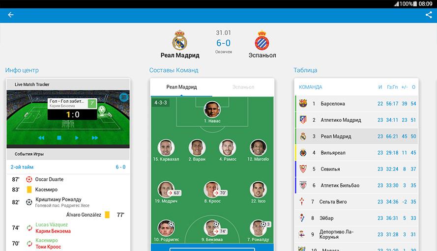 - Глубинный анализ игры: статистика игроков, переходы, турнирные таблицы и спортивные видео.