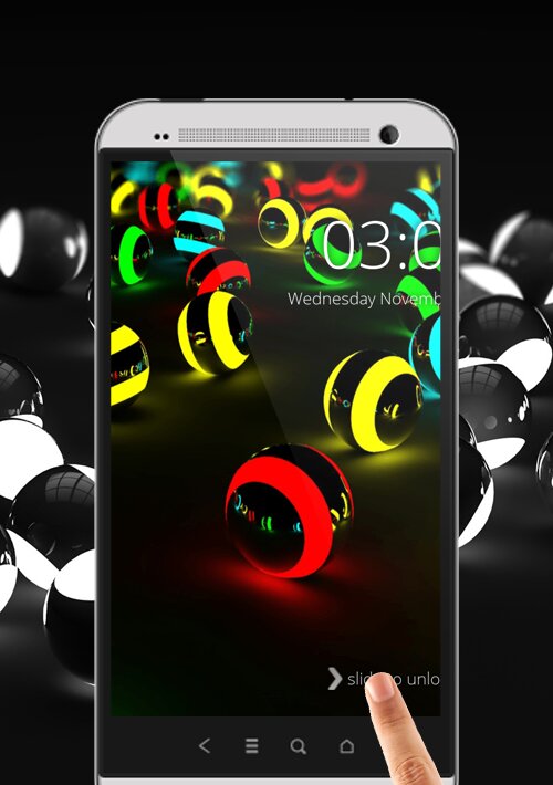 Сменный экран блокировки для Android-устройств, украшенный высококачественными обоями со светящимися шарами. На экране блокировки будет отображаться информация о текущей дате и времени. Программа обладает малым потреблением энергии и требует простого слайда в сторону для разблокировки экрана.