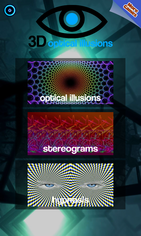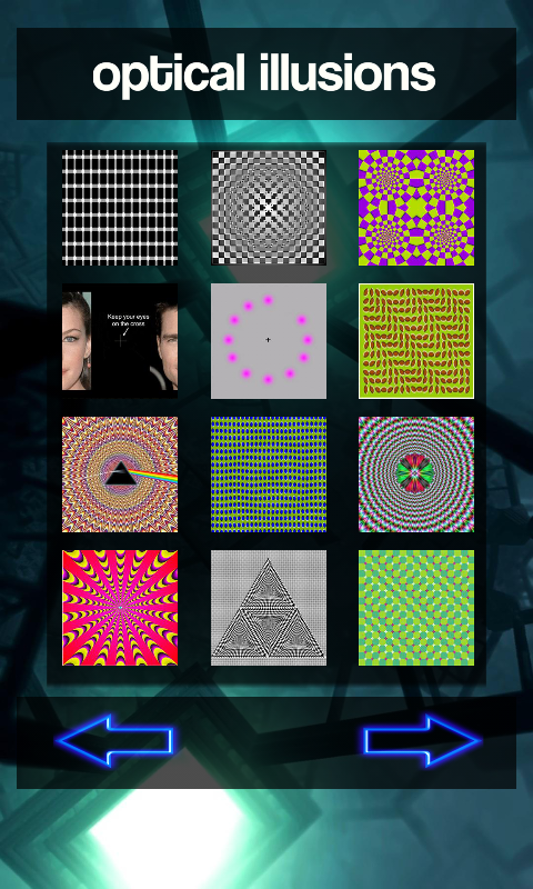 3D optical illusions — оптические иллюзии, стереограммы, гипноз. Лучшие оптические иллюзии, стерео картинки и система гипноза все в одном приложении. Тренируй зрение и концентрацию с помощью стерео картинок, удиви себя и друзей магическим оптическим эффектом, гипнотизируй себя и близких. Наше приложение совершено бесплатное и не требует дополнительной загрузки интернет соединения.