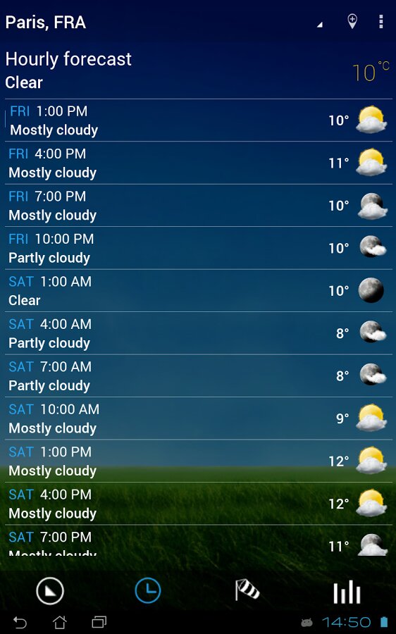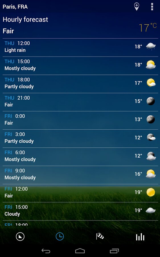 - Текущие погодные условия, почасовой прогноз, ежедневный прогноз и многое другое