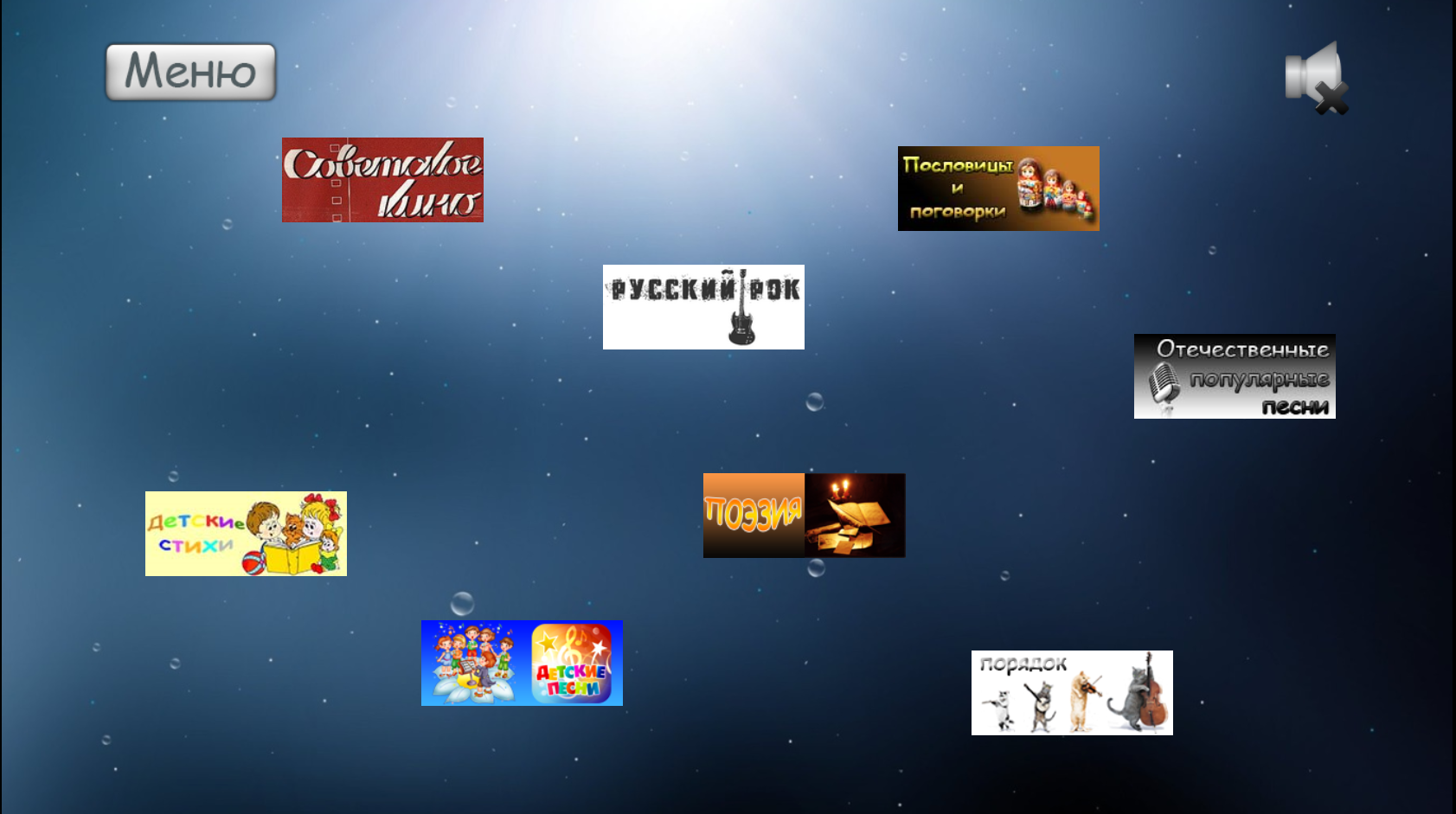 • Темы: советское кино, русский рок, отечественные популярные песни, пословицы, детские стихи и песни и другие!