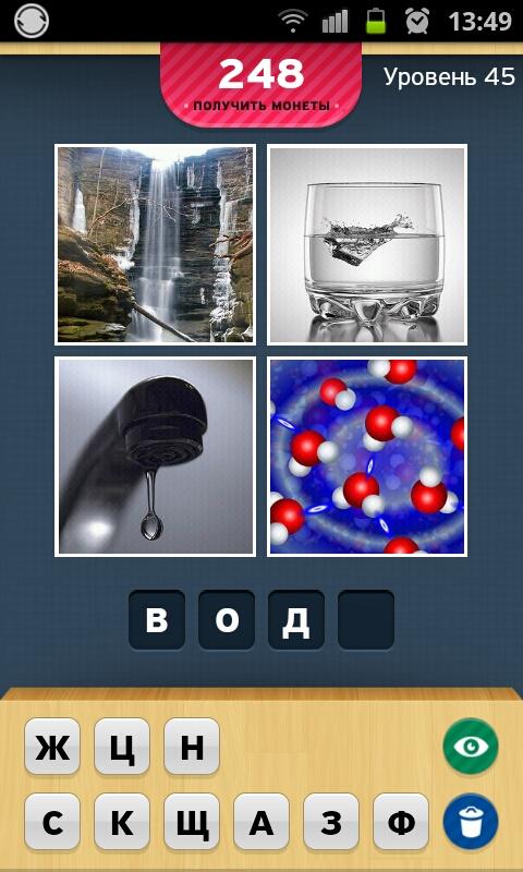 Правила очень просты: По 4 картинкам (фоткам) нужно отгадать объединяющее слово. Посмотрите на картинки – проведите аналогию и угадайте слово. Если вы застряли на каком-то уровне – не беда, используйте подсказки «Удалить ненужные буквы», «Вставить правильную букву» или «Пропустить уровень».