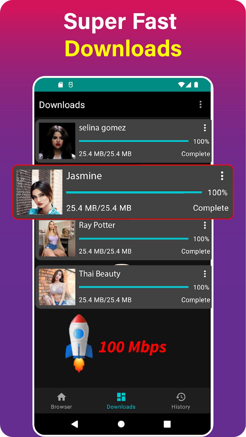 Приложение оснащено усовершенствованным менеджером загрузок, который обеспечивает быстрый и надежный процесс сохранения. Вы можете приостанавливать и возобновлять загрузку в любое время, что идеально подходит для управления большими файлами или при нестабильном соединении.