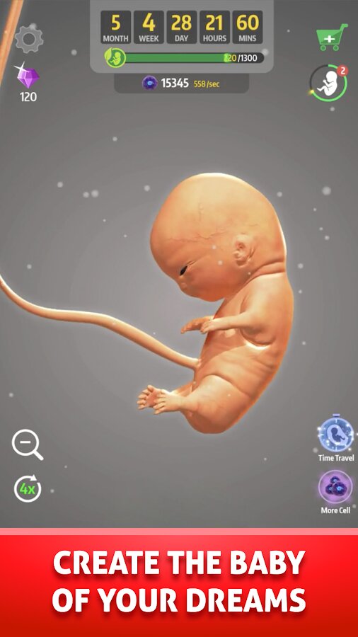 Развитие плода с момента зачатия – это очень занимательный процесс длинною в 9 месяцев. С каждой неделей плод становиться все больше и развитие происходит стремительнее. Теперь вы сами можете поучаствовать в этом процессе и понаблюдать за ним. В кликере 9 Months вы сможете ускорять этот процесс путем изготовления клеток и знакомиться с каждой стадией, на которой будет находиться плод. Благодаря реалистичной графике вы своими глазами вы увидите, как формируются ткани, органы и растет плод.
