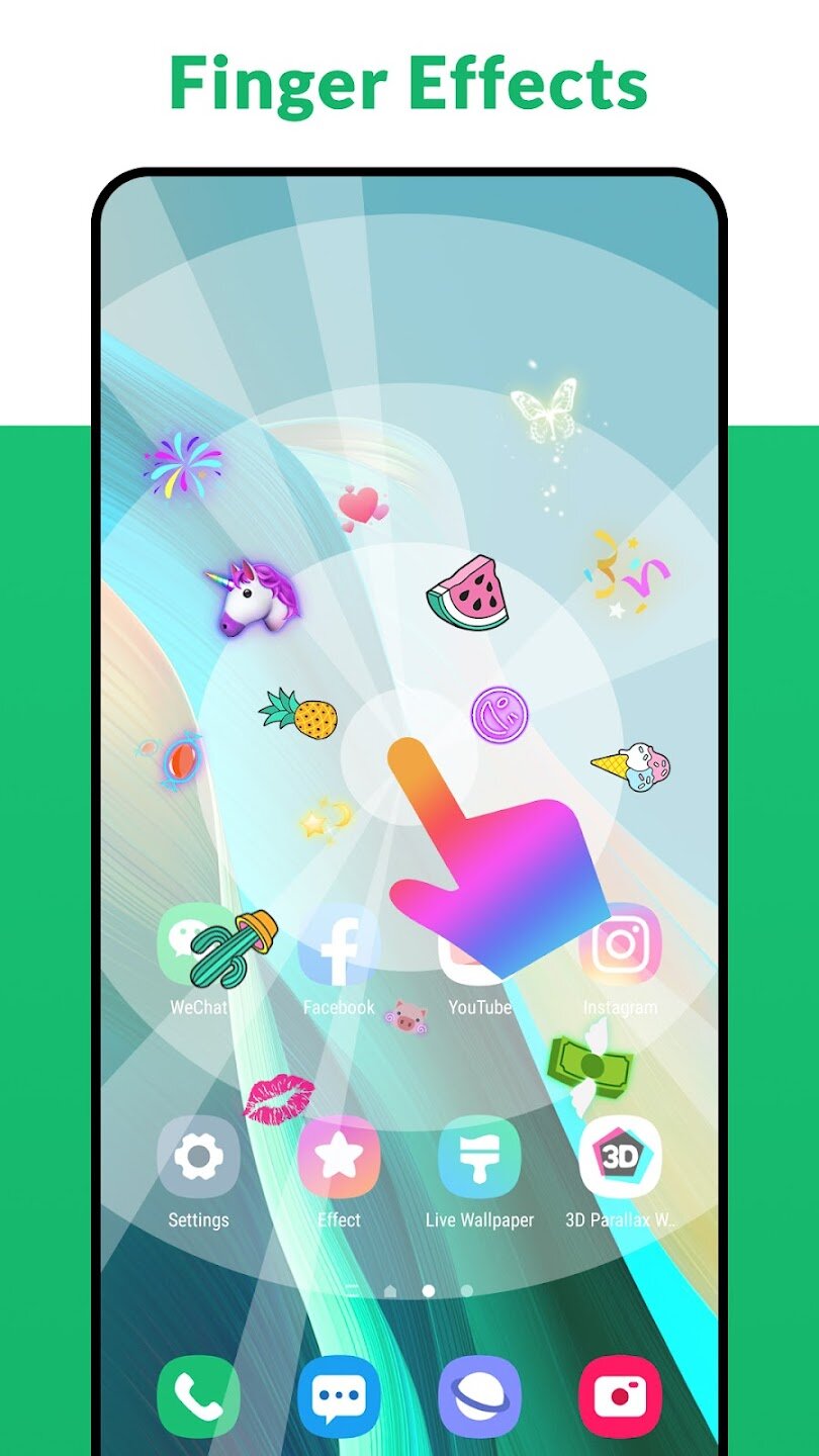 - Динамические живые эффекты для обоев и плавные переходы между экранами.
