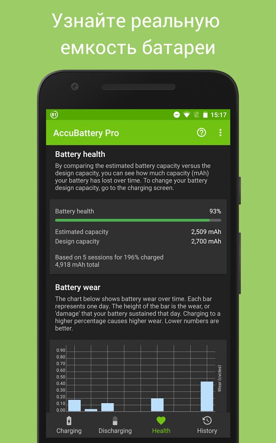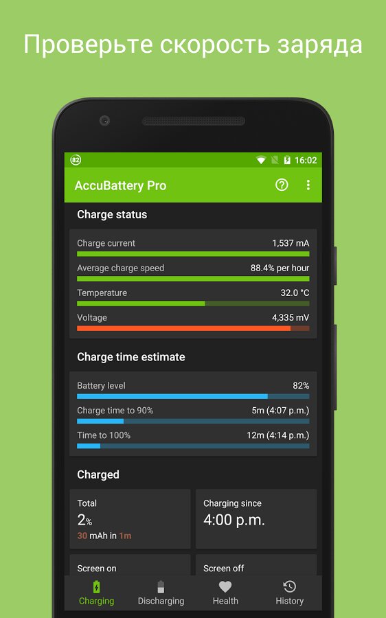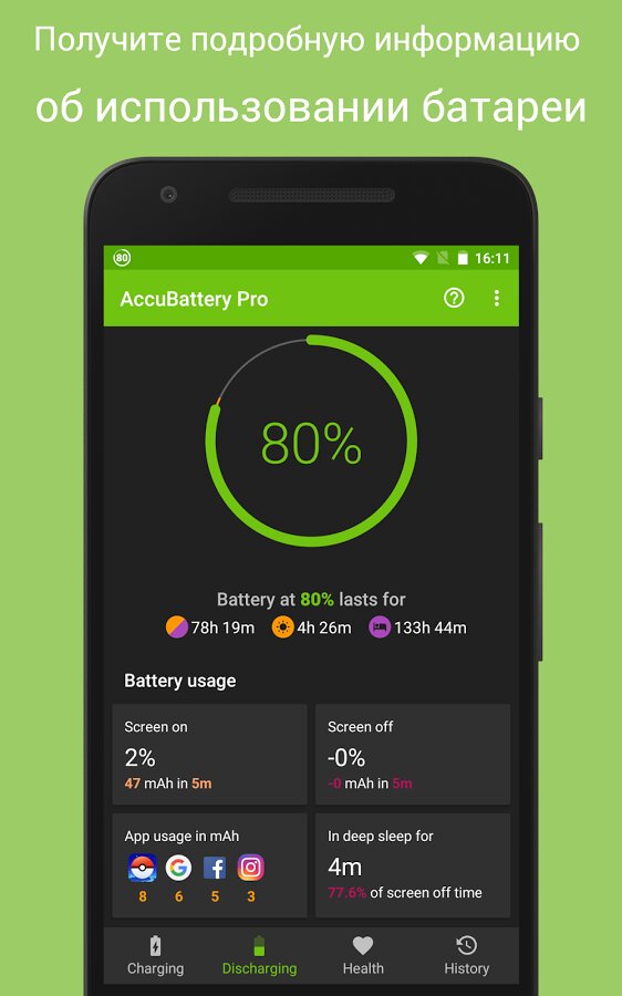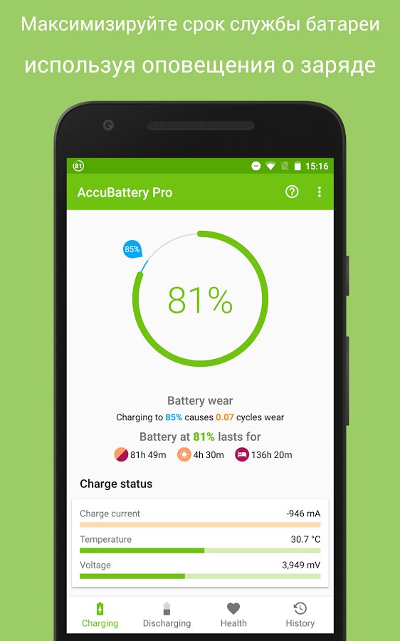 AccuBattery — максимизирует срок службы батареи, отображает информацию об использовании батареи, и измеряет емкость батареи (мА/ч), основываясь на научных методах.