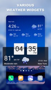 - ❄️ Виджет погоды. Приложение погоды предоставляет различные типы виджетов с информацией о погоде и обновляет погоду в режиме реального времени. Вы можете перетащить виджет погоды в любое место на рабочем столе телефона.