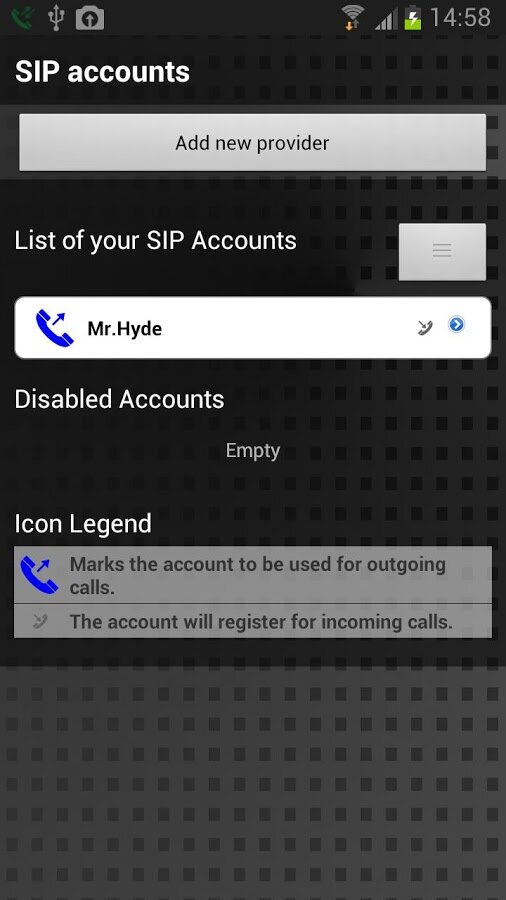 Поддерживает регистрацию сразу несколько аккаунтов одновременно. При исходящем звонке можно выбрать через какой аккаунт звонить.