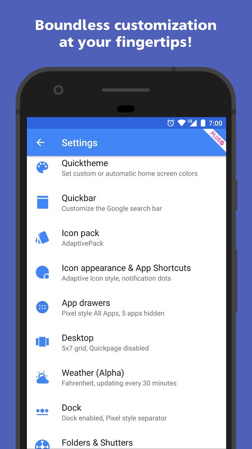 - Быстрая тема: в зависимости от выбранной темы и установленного изображения рабочего стола лаунчер настраивает свой внешний вид, включая общий дизайн, цвета, фон, папки, поисковую строку Google, меню и многое другое