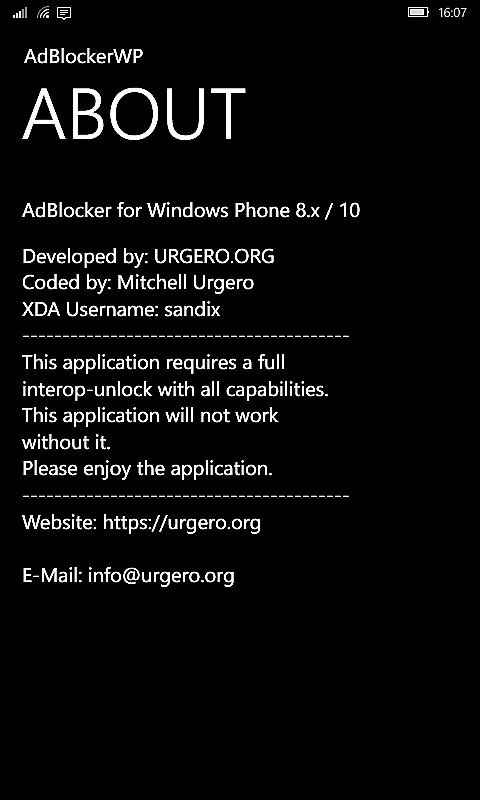 Блокировщик рекламы для устройств на Windows 10 Mobile build 10512 со сделанным Interop Unlock.